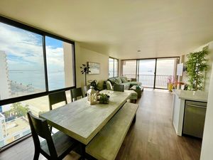 Welcome to the iconic International Tower and enjoy the spectacular views of the ocean, marina, beach, cityscape, and the Queen Mary from this modern luxury, FULLY FURNISHED 1-bedroom, 1.5-bath condo on the 28th floor. This unit offers a spacious open floor plan with floor-to-ceiling windows, luxury tile flooring throughout, ceiling fans, mini split AC system, bar refrigerator, lighted bathroom mirrors & medicine cabinets, 2 large smart TVs with sound bar, and a wraparound balcony to enjoy these breathtaking views. The kitchen features a stainless-steel refrigerator, dishwasher, electric cooktop, vent hood, built-in oven & microwave, stackable washer & dryer in unit, and also includes 2 tandem parking spaces. No pets, non-smoking unit, and the HOA pays for water, sewer, trash collection & basic internet. Tenant to pay for electricity.