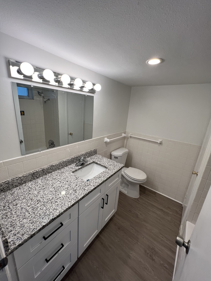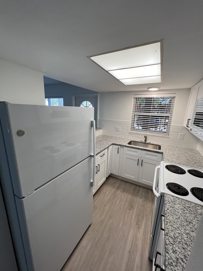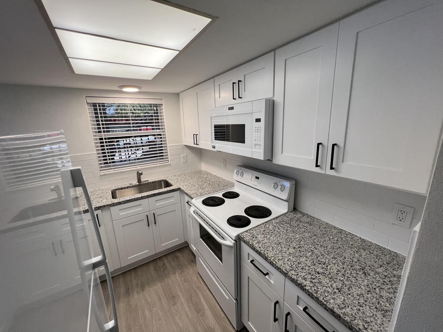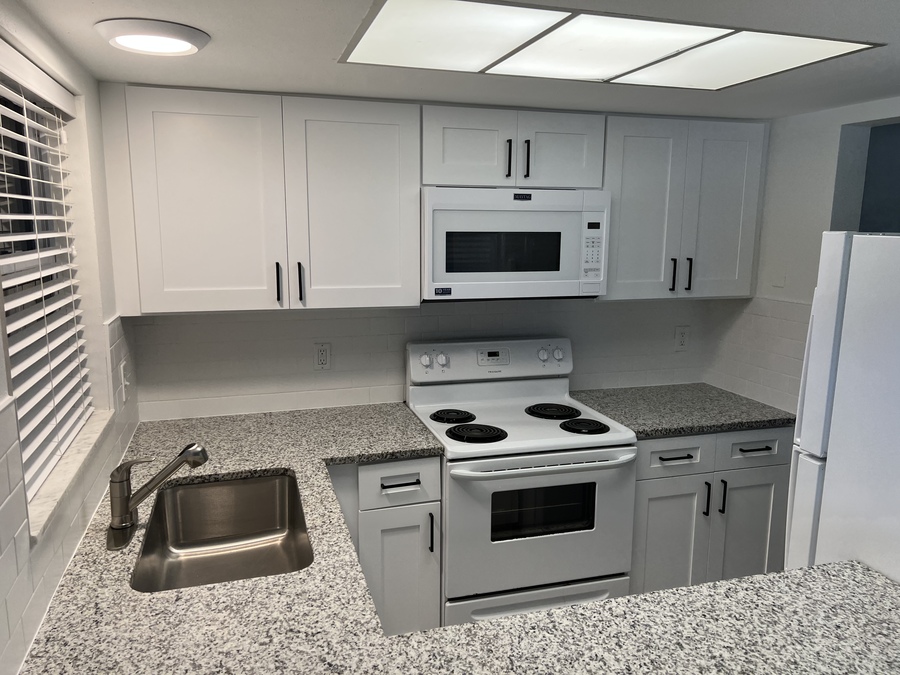 New Kitchen remodel with granite countertops, soft close cabinets and stainless steel appliances