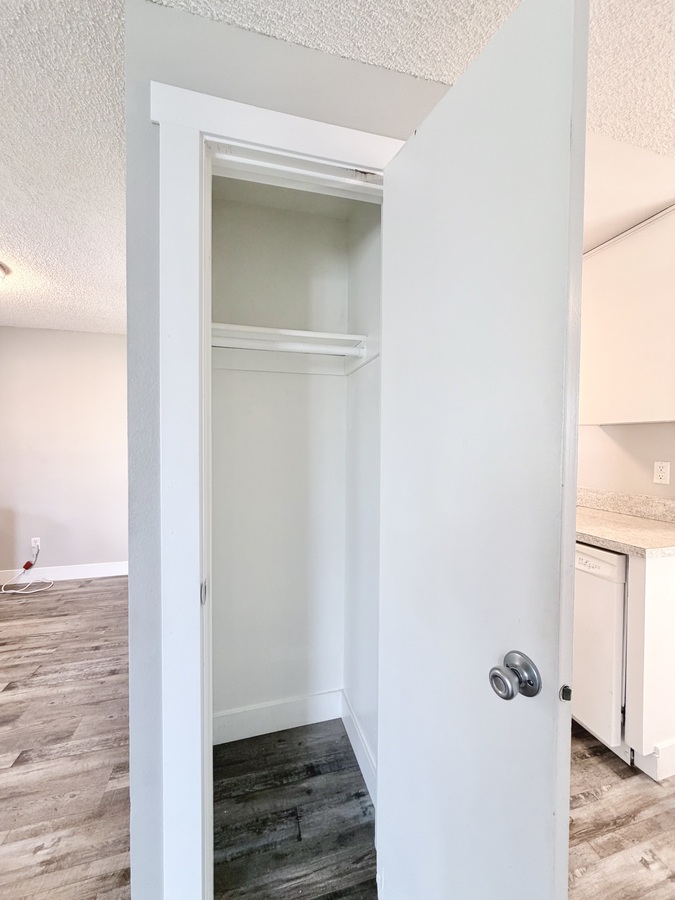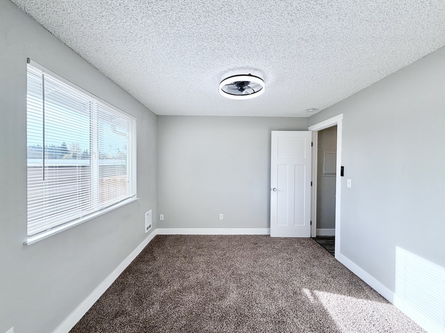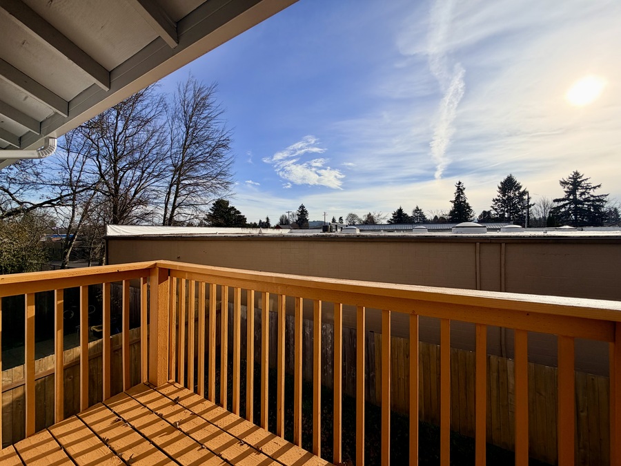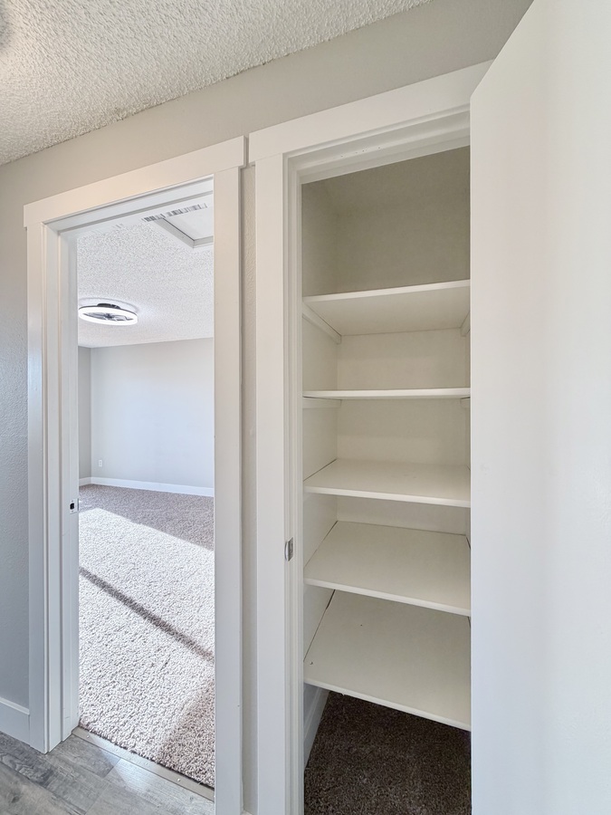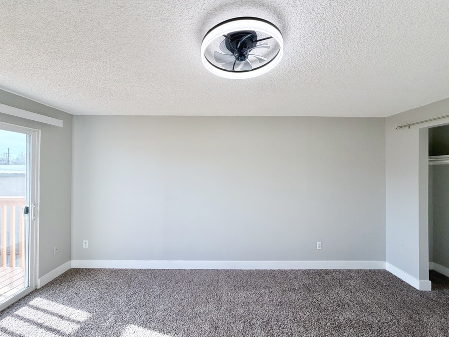 Both carpeted bedrooms provide generous space and comfort—one even includes a private deck, ideal for morning coffee or evening relaxation. You’ll also appreciate plenty of storage, with a coat closet and large bedroom closets throughout.