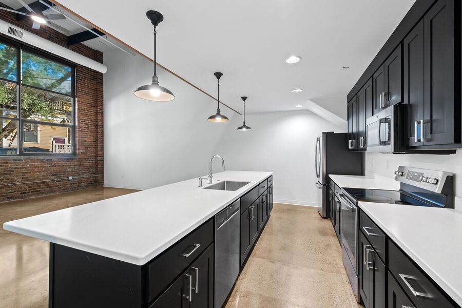 2-Bedroom 2-Bath Loft with high ceilings and polished concrete floors. Every detail has been thought through from the custom light fixtures, thermally efficient windows that let the light and the views in, to the accents wood beams cut from the original building during the renovation and repurposed to light up the Scranton entry way for those that will call it home! Contemporary kitchen with modern appliances and quartz countertops! Luxurious bathroom. Central air. In-suite laundry. Optional gated parking. Owner pays water & sewer; resident pays electric only. Situated along the Towpath Trail and just minutes from downtown, Tremont is Cleveland's vibrant urban village with restaurants, lively art scene, shops, churches, and fun-filled events.