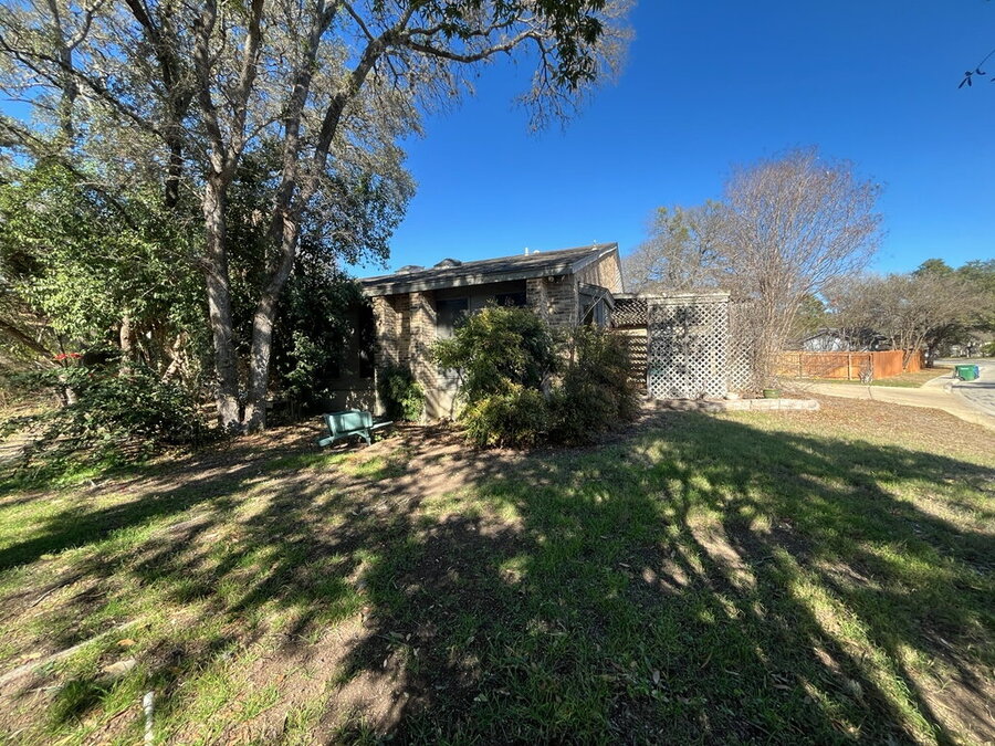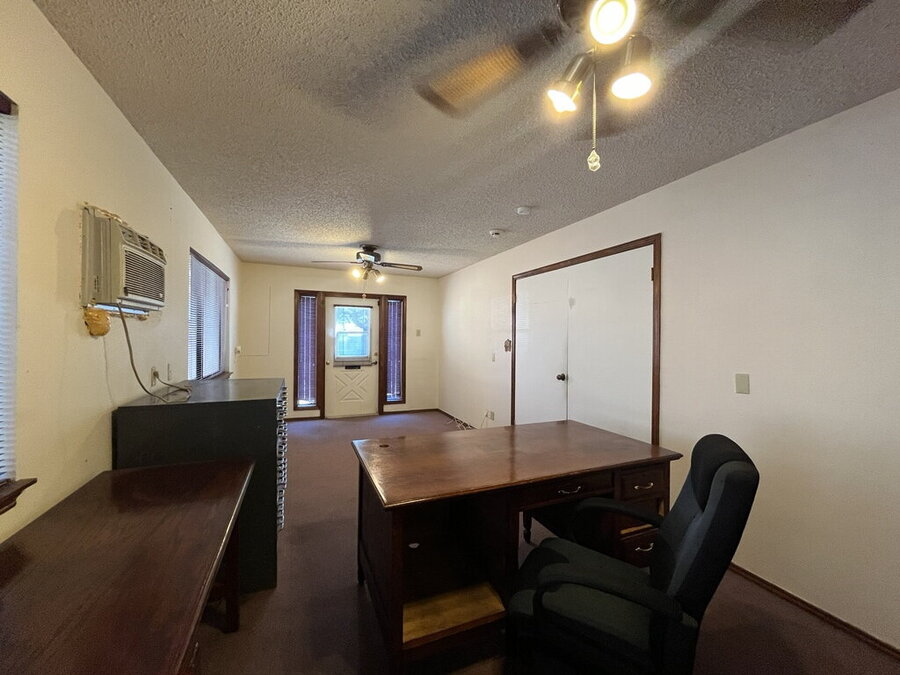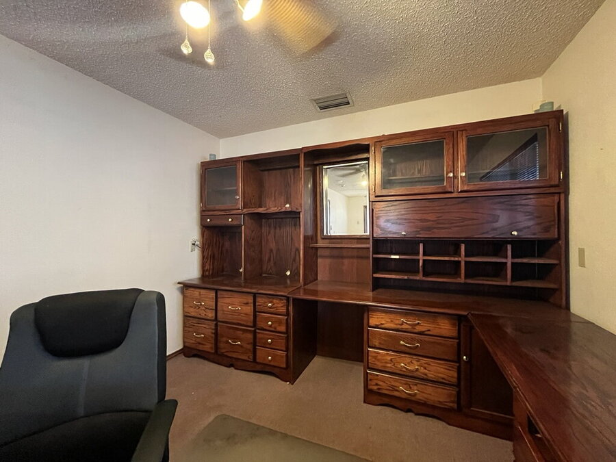 This custom-built 4-bedroom, 2.5-bath home sits on a spacious corner lot shaded by mature oak tree offers a thoughtful layout designed for comfort, privacy, and flexibility. A standout feature is the separate studio/office located just off the garage, providing excellent separation from the main living space. The office includes a built-in desk, generous cabinet and storage space, a window/wall unit, and a private exterior entrance ideal for focused work or creative use.