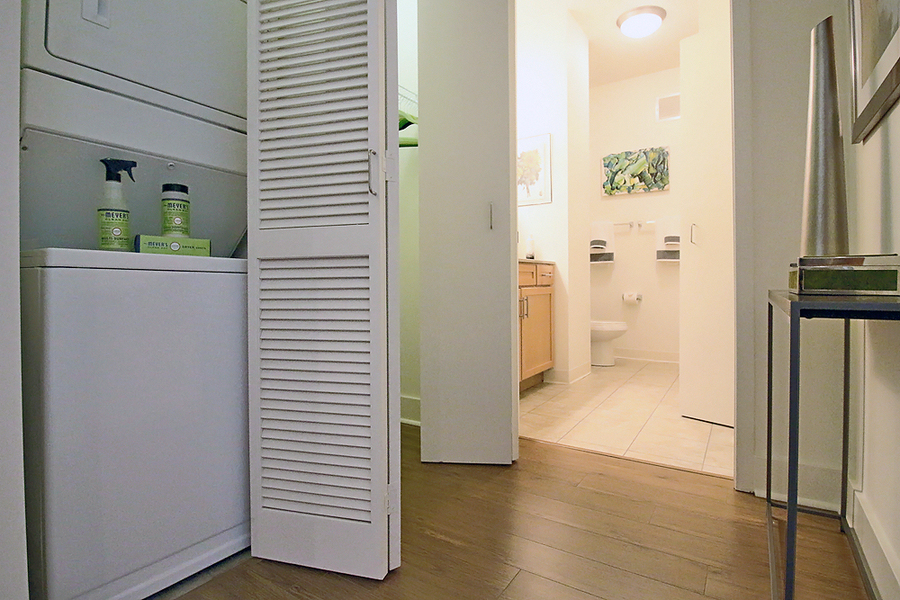 Classic and soft loft finishes highlight these apartments, each with 9 ceilings, floor-to-ceiling windows, in-unit washers and dryers and individually controlled heating and air conditioning. Spacious kitchens have stainless steel or black appliances, granite countertops and 42 cabinets. All apartments have balconies (except the smallest studios) and someone even got smart and included extra sound insulation between residences!