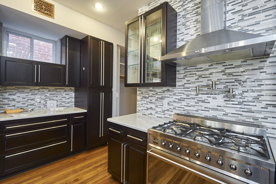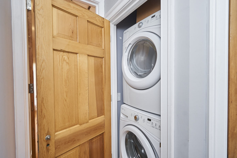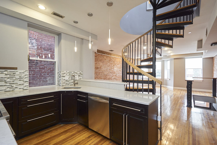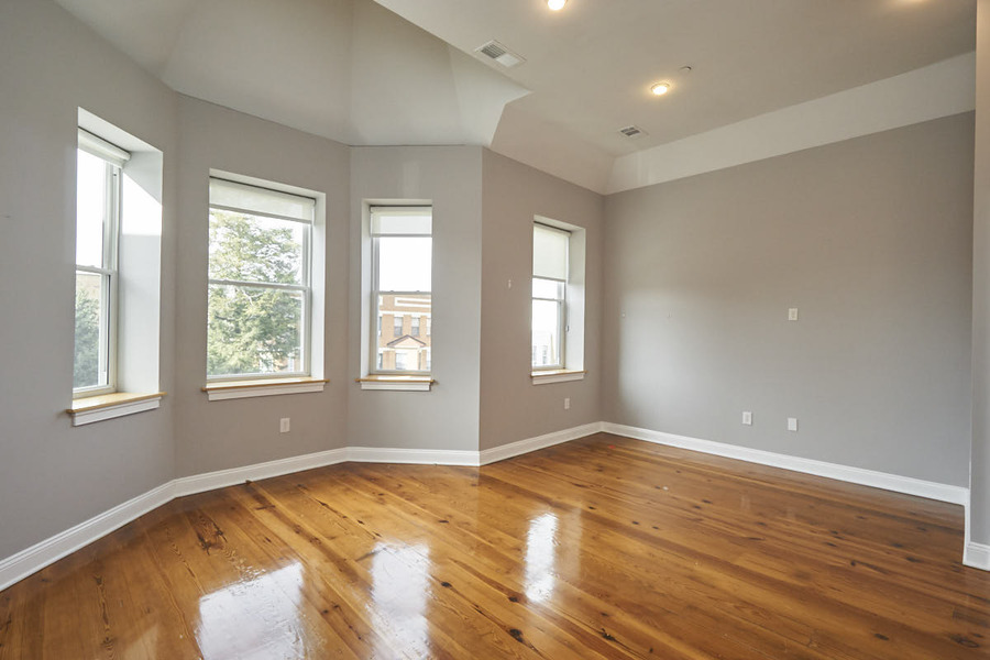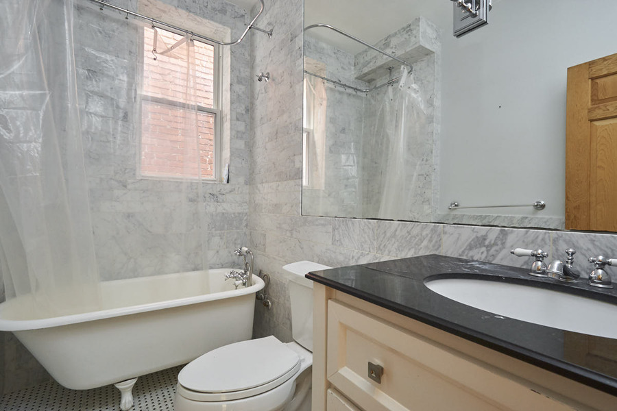 Second floor apartment in newly-renovated rowhouse available. 3br/3ba and a beautiful fully equipped kitchen with a gas stove, washer dryer in unit, and open-space living area. Exposed brick, beautiful repurposed wood floors, marble kitchen top, and deep window sills for displaying knick-knacks or a mason jar of flowers.