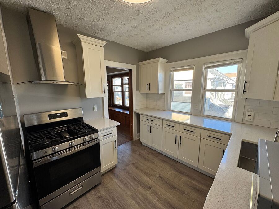 Welcome to this stunning duplex located in the vibrant community of Lakewood, OH. This property boasts three spacious bedrooms and two full bathrooms, offering ample space for comfortable living. The duplex is equipped with central air conditioning, ensuring a pleasant environment all year round. The updated kitchen is a chef's dream, featuring new cabinets, granite counters, and stainless steel appliances. The new flooring and fresh paint add a modern touch to the home, while the hardwood floors and built-in cabinets retain its classic charm. The decorative fireplace adds a cozy ambiance to the living area. The duplex also includes a carpeted loft space on the third floor, perfect for a home office or additional storage. Enjoy the outdoors from your private balcony or take advantage of the off-street parking space included with the property. This duplex is a perfect blend of style, comfort, and convenience.