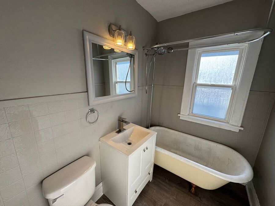 Home supplied with stove, refrigerator, microwave, and dishwasher. Tenant responsible for electric and gas, Water included. Shared Driveway parking with 1 garage parking space. Washer and Dryer hookups in basement. NO PETS. There is a $50 nonrefundable application fee per adult applicant. This includes a credit check, criminal and eviction background check and verify income. We complete pet screenings for applicable pet owners at Petscreening.com with a set up fee. Schedule a tour!