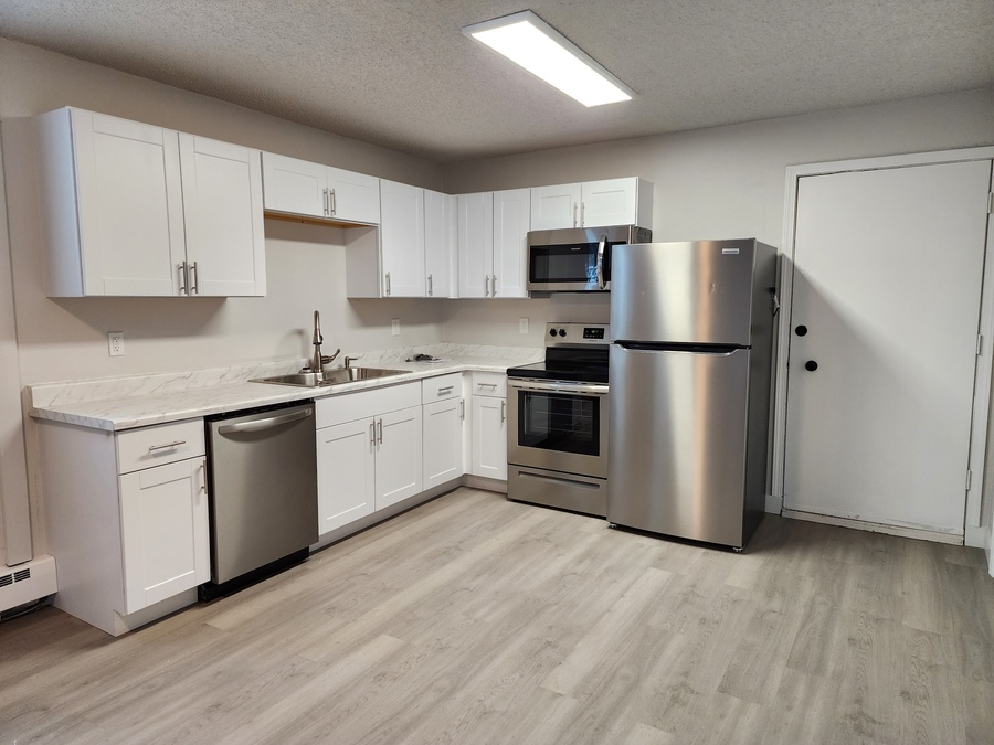 Fully renovated 2-bedroom, 1-bathroom apartment located in the heart of North Pole, offering both convenience and comfort. This unit features an open-concept living and dining area, updated kitchen and bathroom, and durable LVP flooring throughout. Enjoy ample storage with multiple closets, direct access to an attached unheated garage, and easy access to shared laundry facilities. The building also includes a secured entry and indoor mailboxes. A flat monthly utility fee of $250 covers heat, water, and sewer, while tenants are responsible for electricity through GVEA.