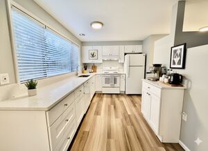 The kitchen is designed for those who love to cook and entertain. The exquisite kitchen features custom wood cabinetry, sleek stainless steel appliances, quartz countertops, and a custom subway tile backsplash, creating a high-end culinary environment. The bright open living space is perfect for hosting friends and family.