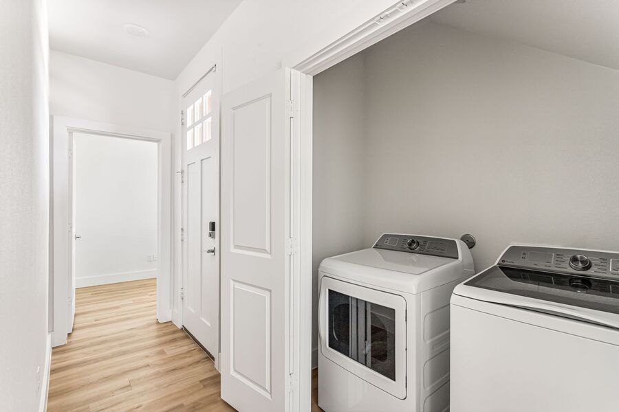 The floor plan is ideal for roommates, with two bedrooms and two bathrooms on the first floor along with a full-size washer and dryer. Upstairs, the second level offers an open-concept kitchen and living area, plus one additional bedroom and bathroom. The third floor leads to your own private rooftop deck, perfect for enjoying the view or gathering with friends.