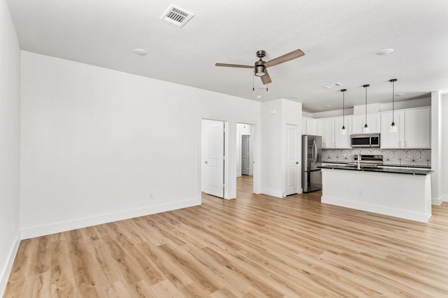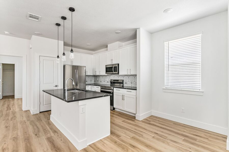 Each unit features three bedrooms, three bathrooms, a spacious three-car garage, and a private rooftop terrace that's perfect for relaxing or entertaining. The interiors are thoughtfully designed with luxury vinyl plank flooring, quartz countertops, shaker-style cabinetry, and stainless steel appliances for a modern, clean feel.