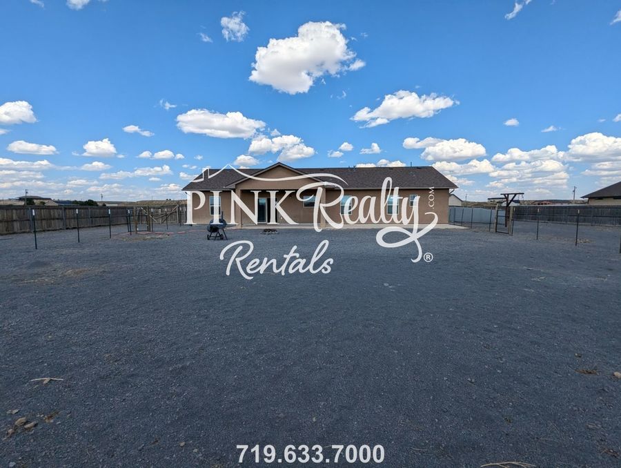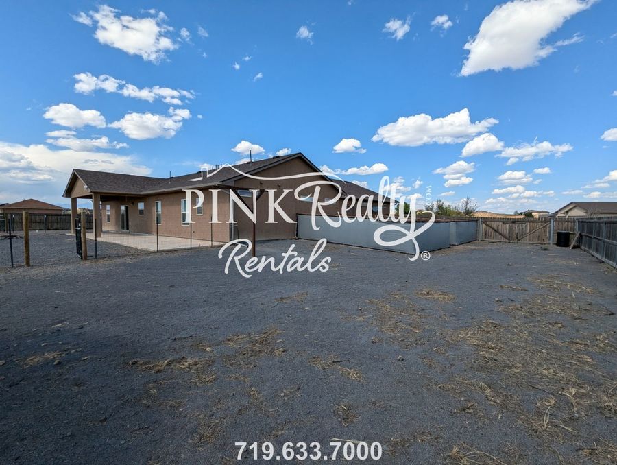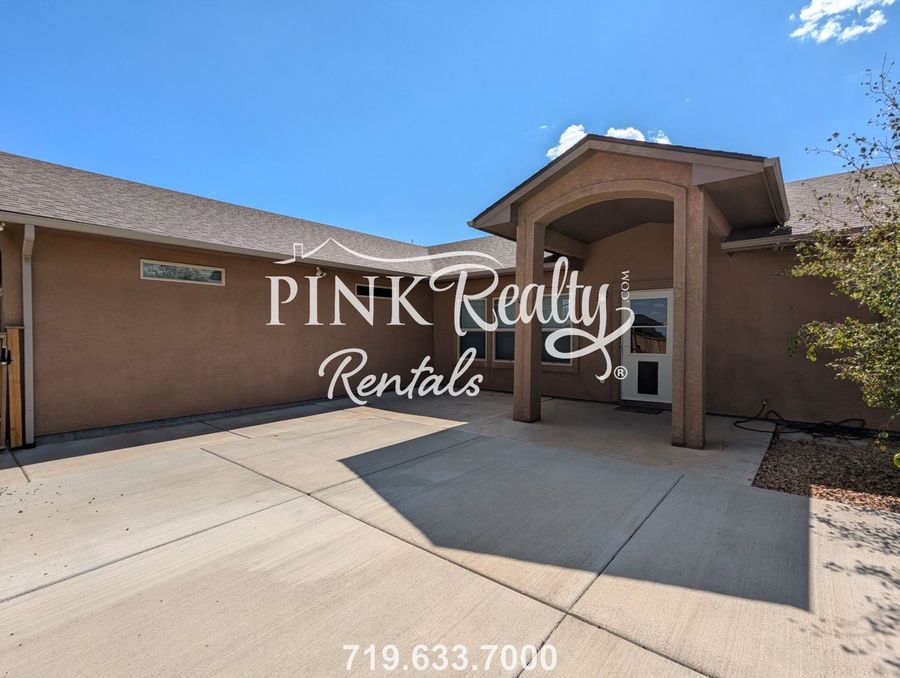 Welcome to this charming 3-bedroom, 2-bathroom home in Pueblo West, CO. This ranch-style house features a modern rain shower in the master bathroom, perfect for relaxing after a long day. The property includes RV hookups for your convenience, as well as an office space for those who work from home. Enjoy the privacy of the fenced front courtyard and fenced backyard, ideal for outdoor entertaining or simply unwinding in a tranquil setting. The storage shed pictured in the backyard is NOT included in this rental. Don't miss out on this lovely home in the desirable Pueblo West area.