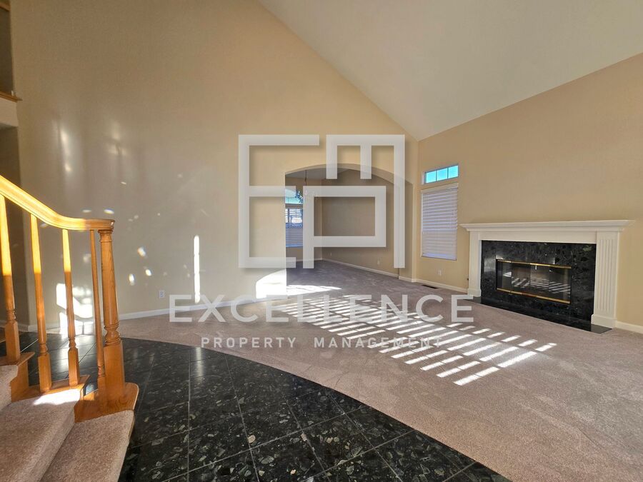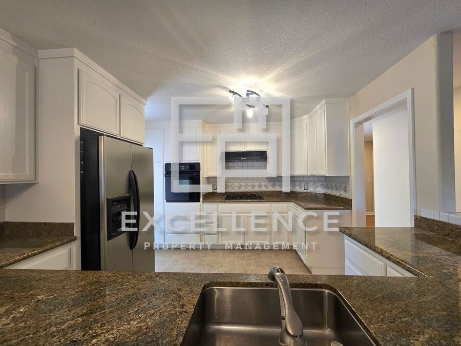 This spacious 2,408 sq. ft. home offers comfort, style, and plenty of room to spread out. The main level features an upgraded kitchen with granite counters, counter seating for five, a gas stove, stainless steel appliances, counter microwave (courtesy item), side-by-side refrigerator with ice maker and water line, and a dishwasher. An eat-in kitchen flows nicely into the formal dining room, providing the perfect space for meals and entertaining. The home also includes both a living room with a fireplace and a separate family room with its own fireplace and slider to the backyard. New carpet and LVT flooring have been installed throughout for a fresh, updated feel.