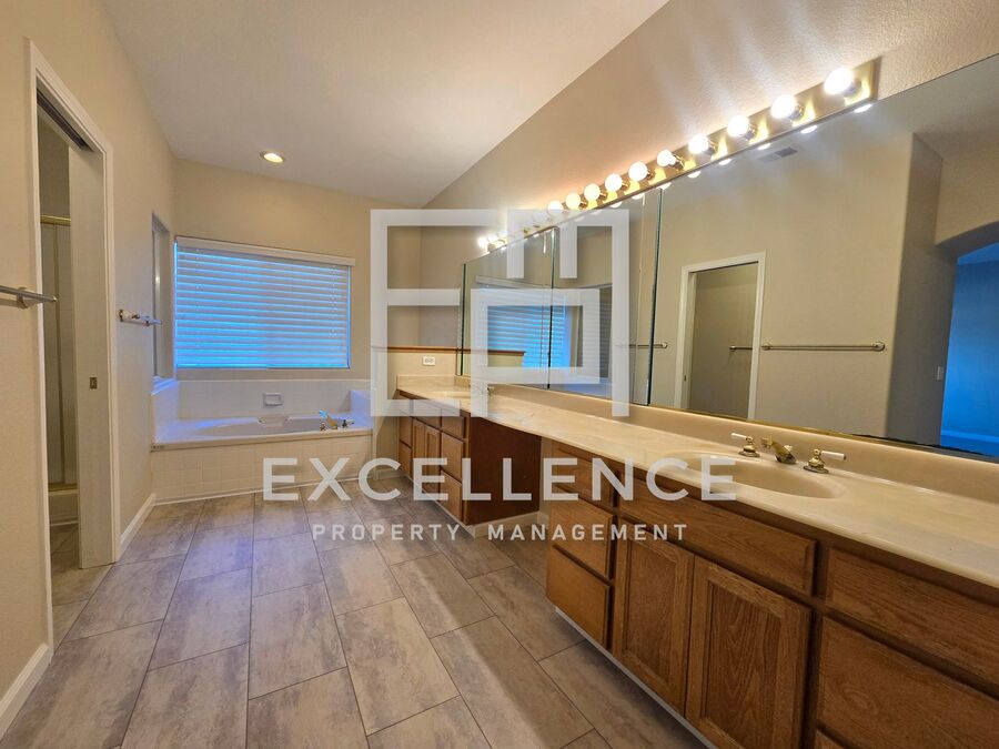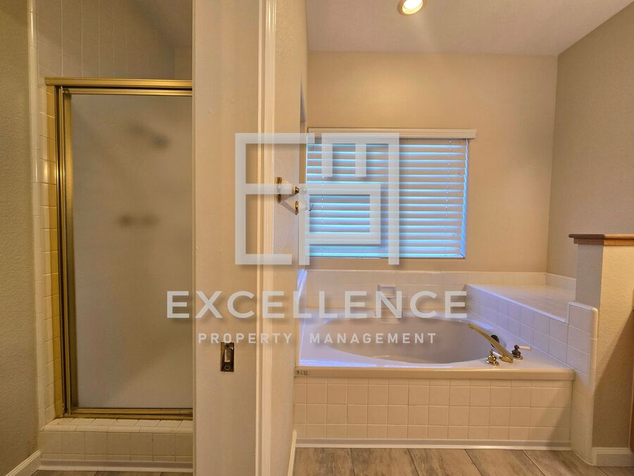 Upstairs, the master bedroom offers a walk-in closet and an attached master bathroom complete with a sunken tub, walk-in shower, double vanity, and a full four-piece layout. Additional features include double-pane windows, vaulted ceilings, central AC, and a laundry room with storage and washer/dryer hookups. Enjoy outdoor living with a private yard, patio, and storage shed. A two-car garage with a Tesla car charger is also included, and pets are negotiable.