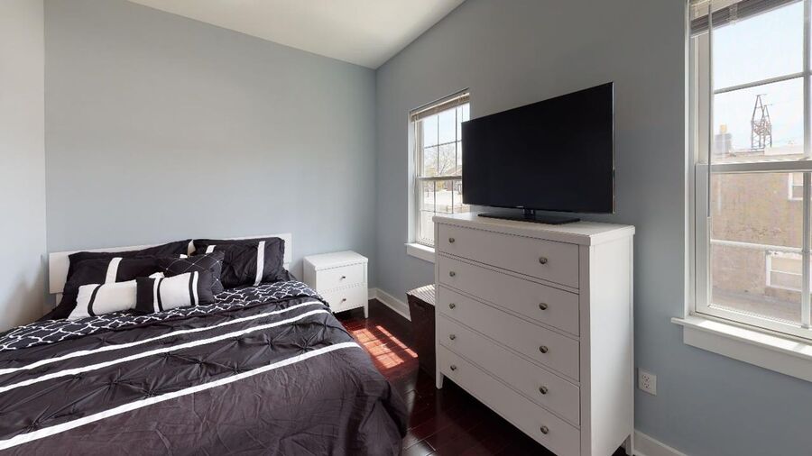 Luxury bi-level, 2 bedroom, 1.5 bathroom apartment. The gorgeous interior features amenities including: central air, designer lighting, new washer/dryer, and hardwood floors. The property consists of a spacious, open living room with an adjacent powder room. A super modern gourmet kitchen furnished with stainless-steel appliances that include a dishwasher, refrigerator and microwave, in addition to sleek granite counter-tops and elegant designer cabinetry. An amazing glass and stainless steel banister along the stairs leads to the second level, which features 2 beautifully painted spacious bedrooms with abundant closet space in both, a beautiful full bathroom with a modern stand up glass shower and truly exquisite tile.