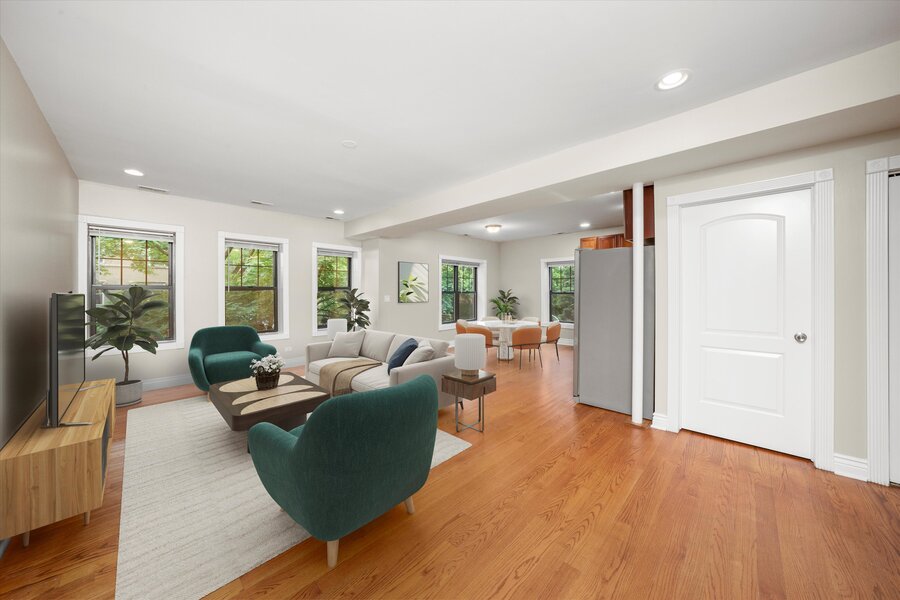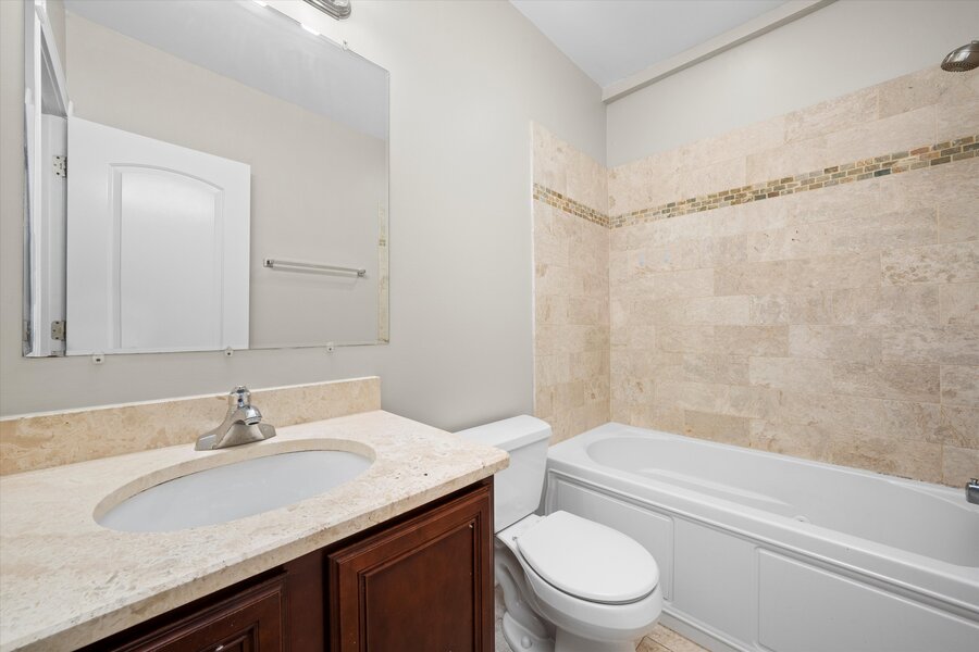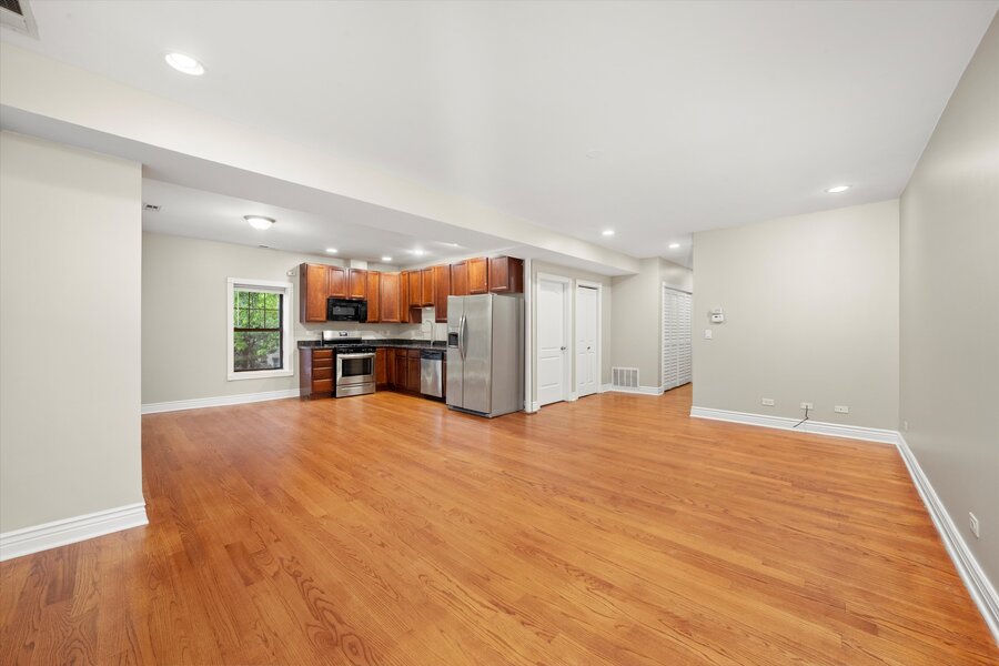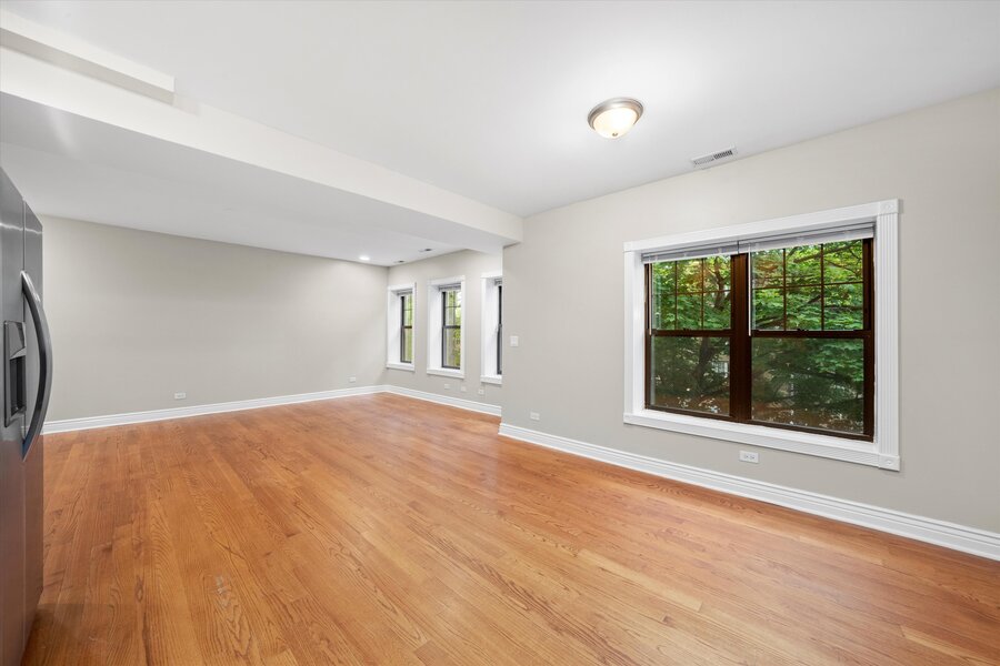 Recently rehabbed apartment with high ceilings, hardwood floors, a desirable open floor plan, granite kitchen counters, hardwood cabinets, stainless steel appliances, and beautiful stone tiling in the bathrooms.