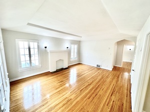 Welcome to this charming and sun-filled upper 1-bedroom apartment in Mid-City. This home features a spacious living room with large windows, wood-style flooring, and a clean, functional layout that flows seamlessly into the dining and kitchen area. The bright galley kitchen offers plenty of cabinet space, tile countertops, and a peaceful treetop view.