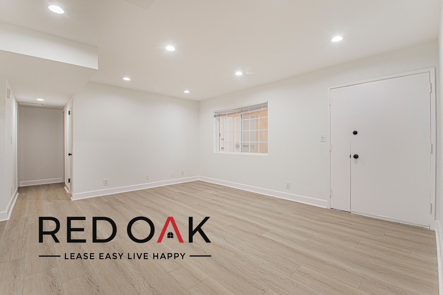 ~ Open & Airy: Beautiful hardwood-style floors, enhanced by recessed lighting.