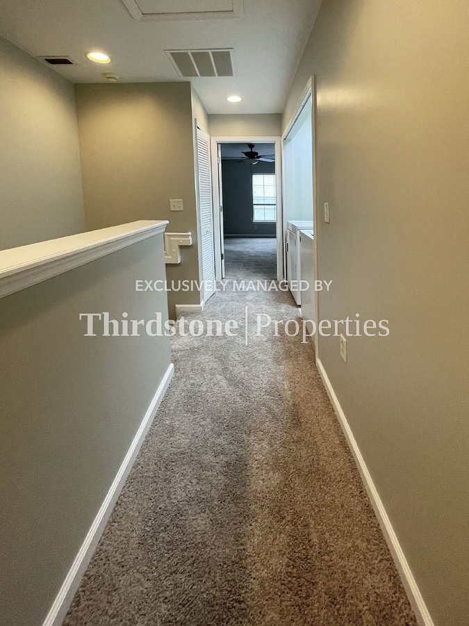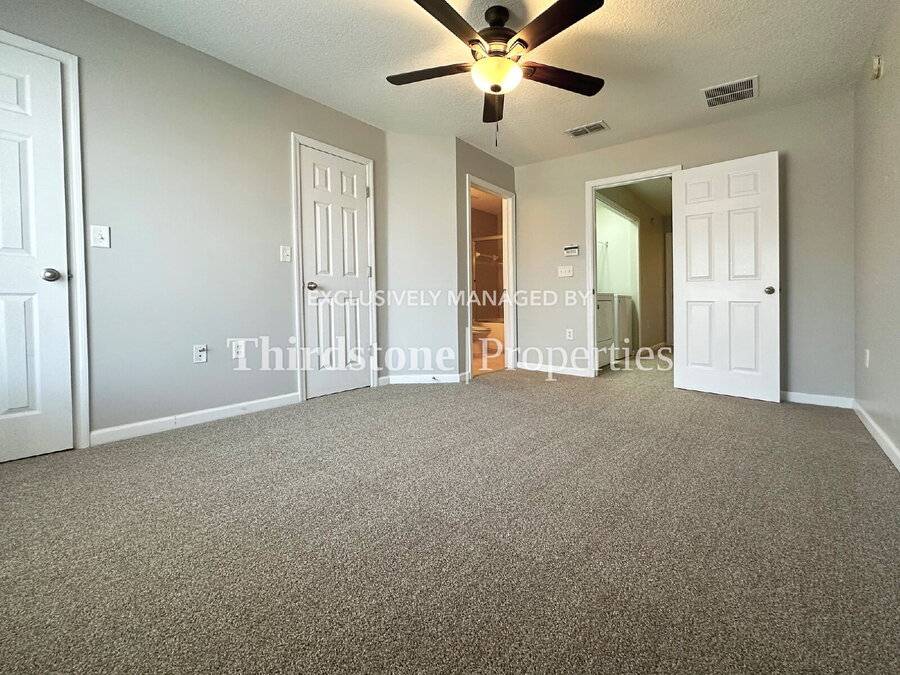 Welcome to this inviting 2 story, 2 bedroom, 2.5 bath townhome located in the desirable Regency neighborhood. Step inside to discover ceramic tile flooring spanning the first floor, beautifully illuminated by recessed lighting and elegant light fixtures that create a warm and welcoming atmosphere. The kitchen features bright wood cabinetry paired with stone countertops along with an over-the-range microwave. A convenient bar seating area overlooks the living room. Brand new carpet lines the stairs and continues throughout the upper level, where both bedrooms are located. Each spacious bedroom offers a generous closet and a private ensuite bathroom. Ceiling fans in the living room and both bedrooms help circulate the cool air, while many windows throughout the home are outfitted with privacy blinds. For added convenience, a washer and dryer are tucked away in an upstairs closet. Residents are responsible for all utilities and are required to maintain active renter’s insurance throughout the lease term. Pets are welcome, breed and weight restrictions may apply. Application fee $55 per person 18 and over. Lease Term: 12 months.