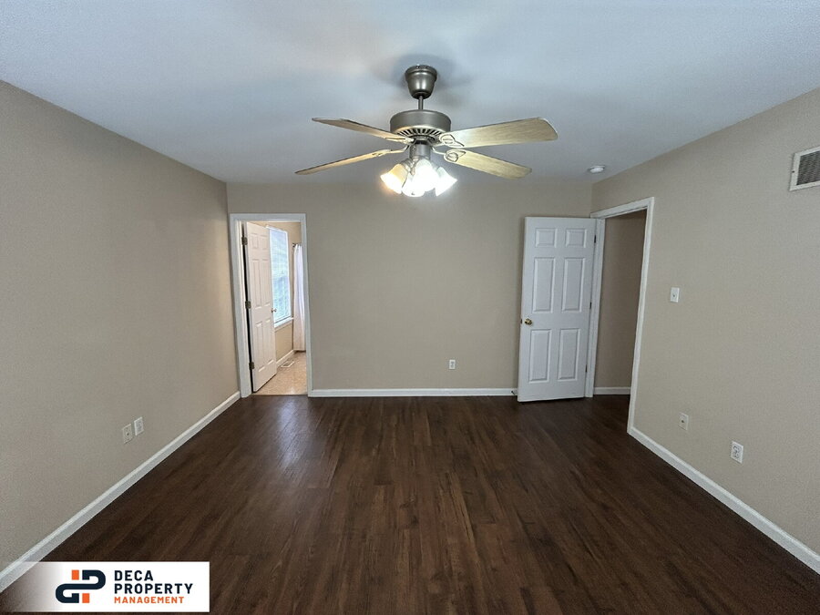 Upstairs, you'll find all three bedrooms. The first two bedrooms are positioned at the rear of the home and feature LVP flooring, generous closet space, and convenient access to the full hall bathroom. The primary suite is spacious and comfortable, complete with a ceiling fan, walk-in closet, and a private full bathroom for added privacy and convenience.