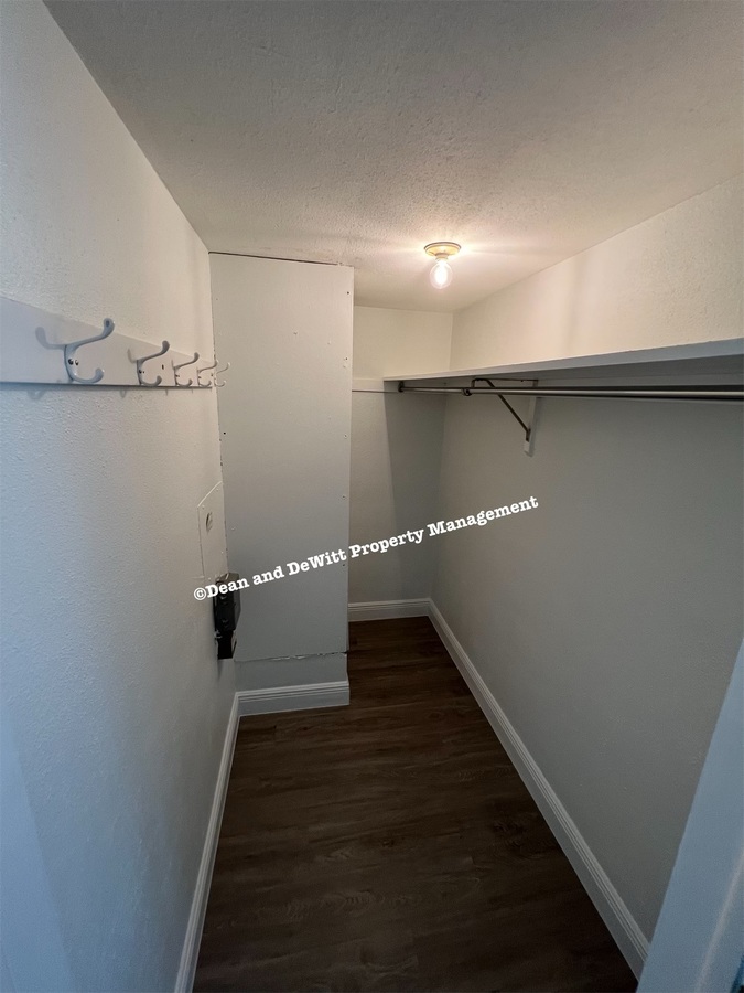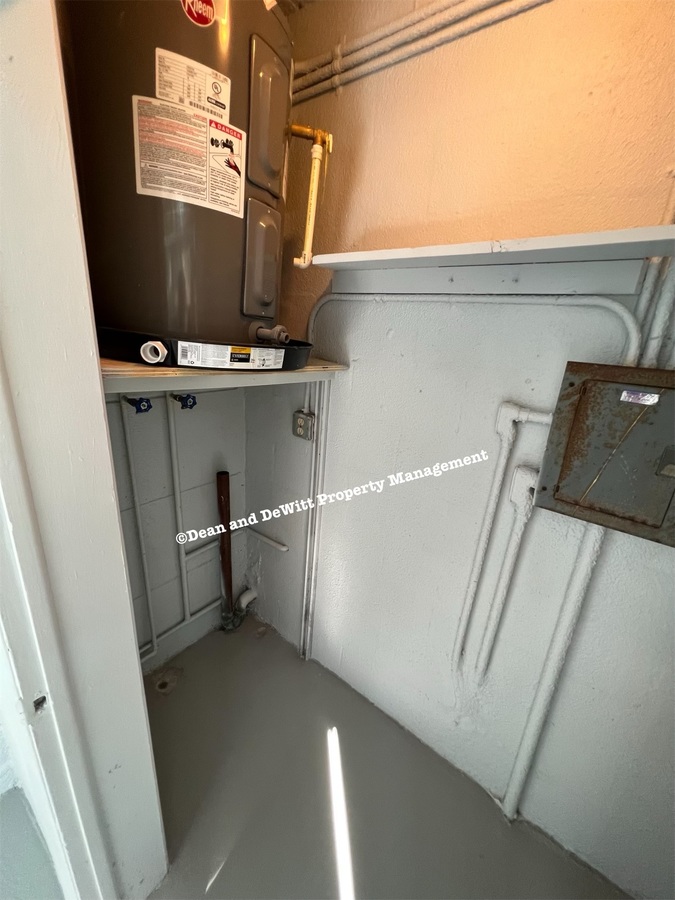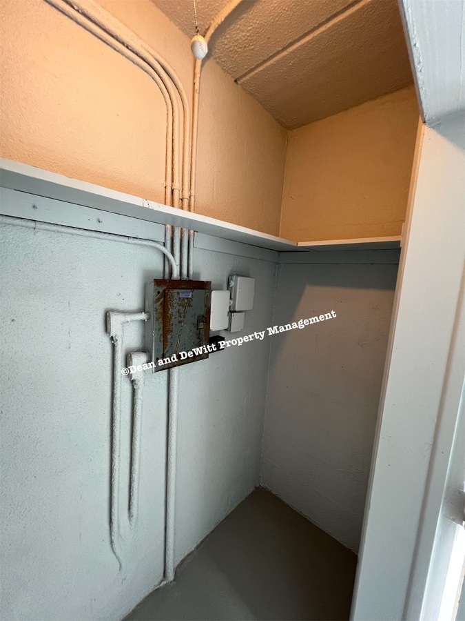 Laundry room on balcony with w/d hook ups; tenant must supply water dryer vent