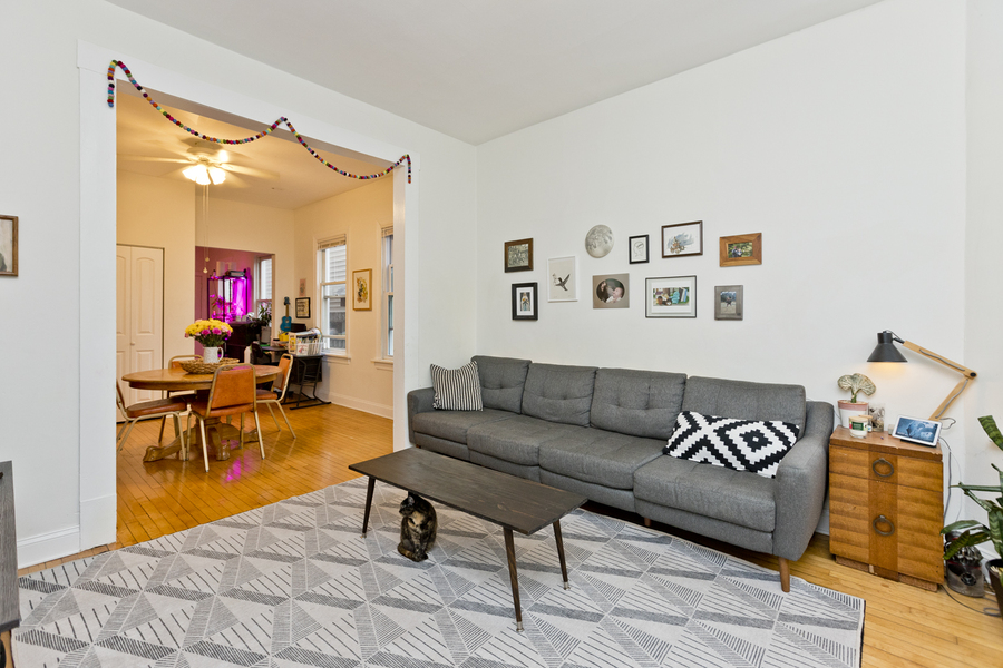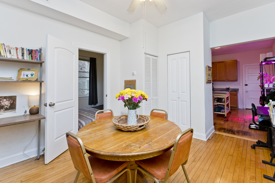 1 Bedroom Plus Den Dog Friendly Roomy Vintage High-Ceiling Apartment in the Irving Park neighborhood! | Easy access via Elston, Kimball and Irving Park Streets & Road | Maple Strip Hardwood Floors throughout | Bright 14ft x 12ft Living Room | 12ft x 11ft Formal Dining Room | 14ft x 12ft Eat-In Kitchen with an Island and Stainless Steel Appliances (Dishwasher!)! | 1 Queen-Sized Bedrooms | Central Air | Coin Laundry is available within a short walk in the interior hallway downstairs | Dogs under 40lbs allowed with a $50/ month rent increase (Sorry, no cats) | Easy Street Parking | 12 Minute Walk to the newly opened LA Fitness | 11 Minute Walk to the Addison Blue Line L Stop | 11 Minute Walk to Elston Plaza (Jewel-Osco, Chase Bank, Chipotle and many more) | NO Security Deposit, $350.00 One-Time Non-Refundable Move-In Fee instead