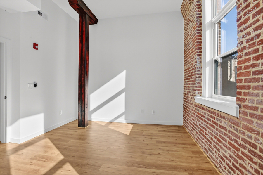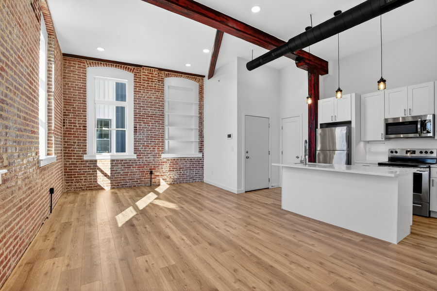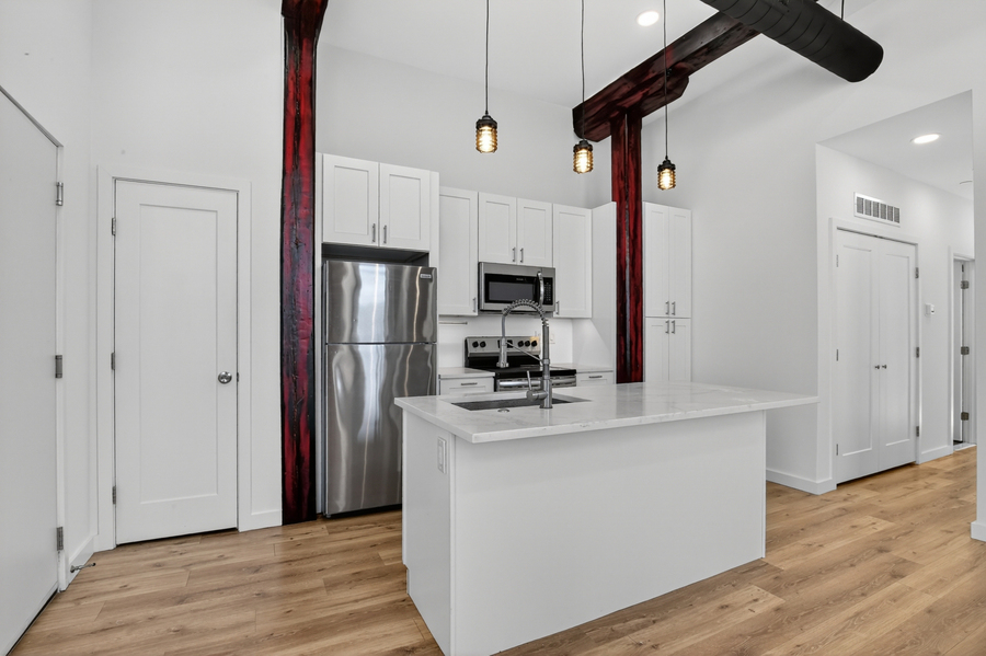 Unit #303 is a 2 bedroom, 2 bathroom apartment boasting an open floor plan. Please note: the virtual staging is from a similar unit; exact layouts & finishes may vary.