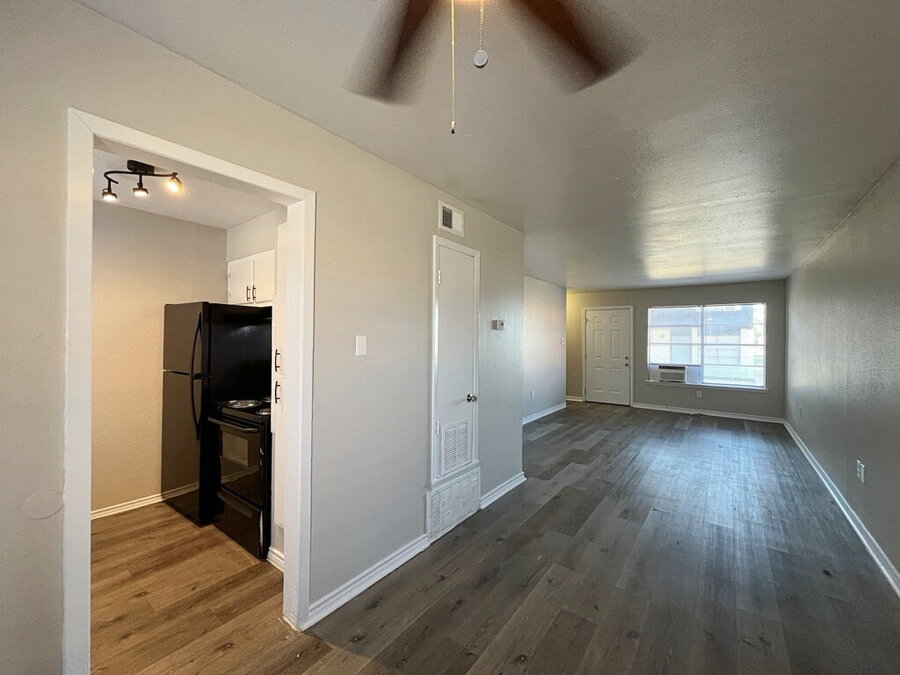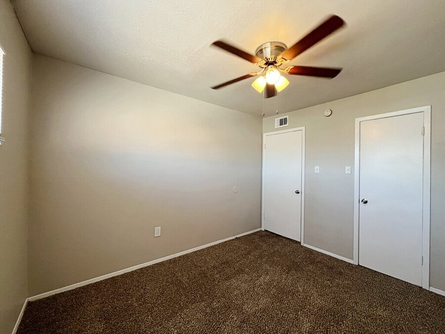 The kitchen is well-equipped with solid countertops, an electric stove, and a refrigerator ready for your next home-cooked meal. You’ll also appreciate modern essentials like a programmable thermostat and a carbon monoxide detector for comfort and peace of mind year-round.