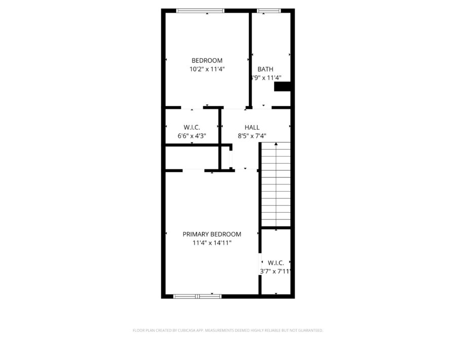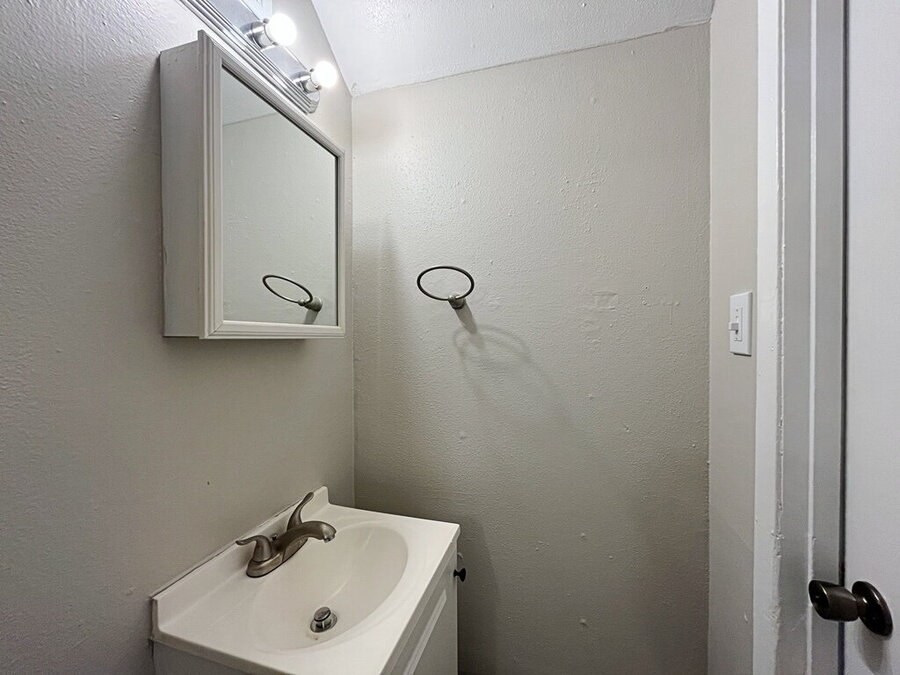 Upstairs, you’ll find both bedrooms, including a primary suite with multiple closets one of them a generous walk-in offering plenty of storage space. The full bathroom includes a tub/shower combo and single vanity, while the convenient half bath downstairs adds an extra touch of ease for guests.