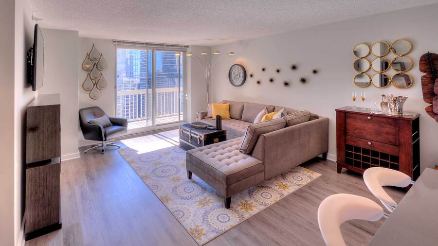 Our pet-friendly apartment homes include efficient studios, as well as expansive convertible, one-, two-, and three-bedroom floor plans that feature private balconies, granite countertops, stainless steel appliances, and in-unit washers and dryers. Enjoy over 50,000 square feet of community amenities, such as our outdoor heated pool, sundeck, running track, state-of-the-art fitness center and on-site market. Grand Plaza puts you steps from every landmark and famous location that makes Chicago great. Imagine yourself Living Grand.