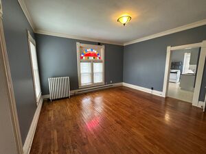One bedroom, One bath apartment right off the historic square in downtown Liberty. This is a lower level, end unit with beautiful hardwood floors and a lot of historic charm, pocket door, original moldings, wide baseboards and crown molding and even a bit of brick wall.