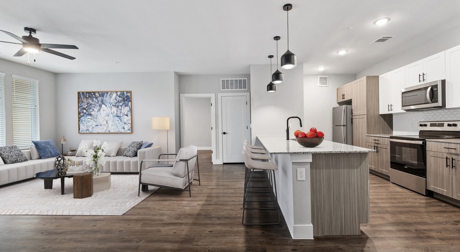 Experience elevated everyday living in a community designed with comfort, convenience, and style in mind. These thoughtfully crafted apartment homes feature spacious floor plans, modern finishes, and smart home technology that make daily life effortless. Enjoy access to premium amenities including a resort-style pool, state-of-the-art fitness center, and stylish clubhouse with co-working and lounge spaces. Whether you're relaxing by the fire pit, entertaining at the outdoor kitchen, or taking your pup to the dog park, every detail is designed to enhance your lifestyle. With a pet-friendly atmosphere and a strong sense of community, it's easy to feel right at home. Surrounded by green spaces and conveniently located near tech hubs, shopping, and dining, this vibrant retreat offers the perfect mix of urban energy and residential calm. Discover a living experience that blends sophistication with comfort—where every moment feels just right, and coming home is the best part of your day.