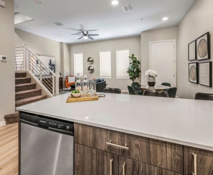 Each townhome includes a two-car attached garage, providing easy vehicle access and additional storage. Step out onto your private second-floor balcony to savor the stunning Arizona sunsets. Cool off in our sparkling swimming pool on hot summer days and take advantage of the beautifully landscaped surroundings.