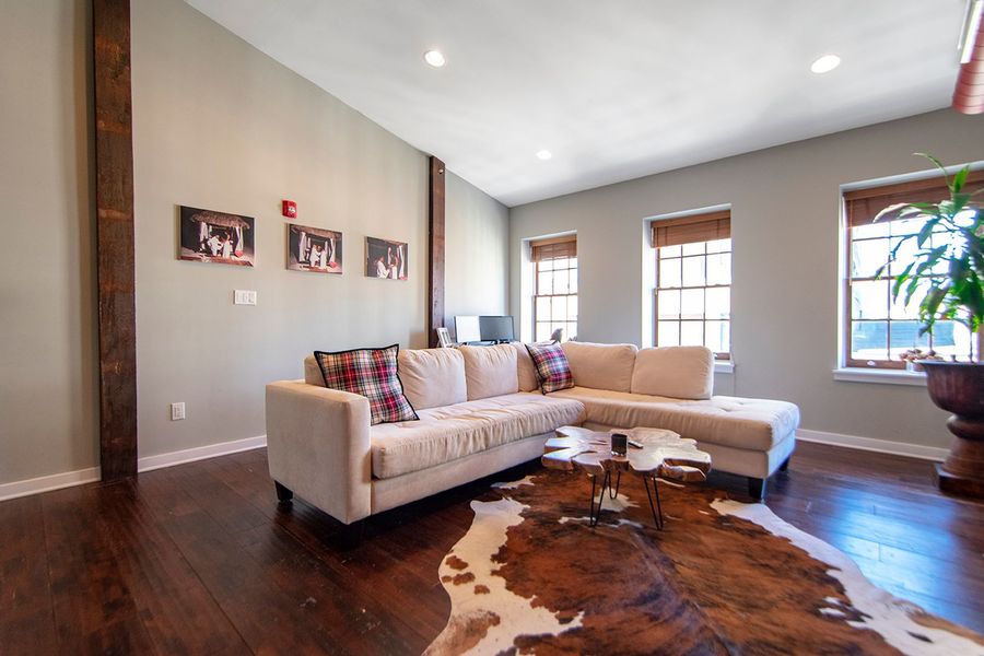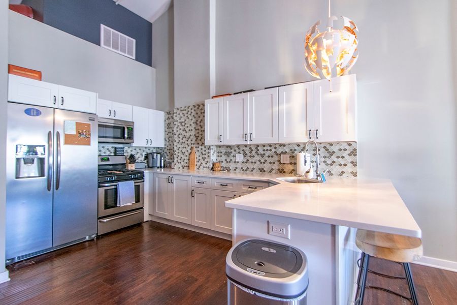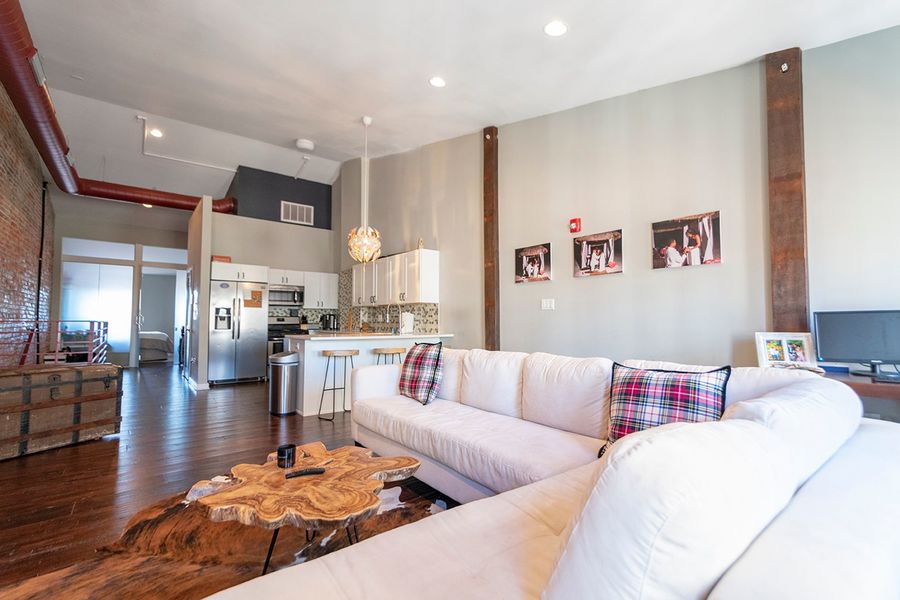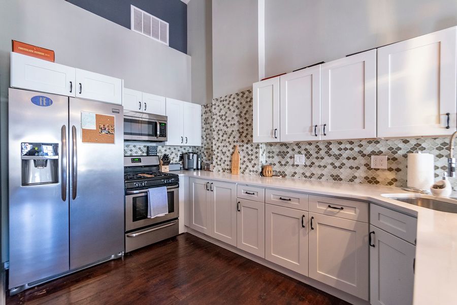 Welcome to 19 North 3rd Street, a beautifully designed 1 bedroom 1 bathroom apartment on the 5th floor of a historic building in Old City, within walking distance to several restaurants, bars, and public transportation! This spacious home has hardwood floors throughout and a mix of rustic touches with modern elegance. The kitchen boasts all stainless steel appliances, white quartz counter tops with a breakfast bar, and a glass tile back splash. The open concept living area is filled with natural sunlight from 3 over sized windows. The exposed brick wall continues from the living room into the bedroom which has a spacious closet and private balcony. The bathroom has floor to ceiling marble tile and a glass shower with stone flooring. You will live comfortably with central air, and an in unit washer/dryer.