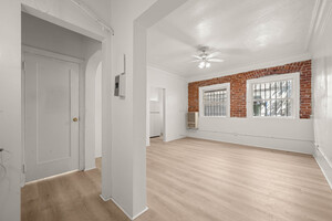 This timeless 1920's building is steps from Wilshire Blvd. The apartment features an exposed brick wall, hardwood flooring, and a ceiling fan. Convenient public transportation pick/drop off points and street parking along with grocery stores and restaurants within walking distance.