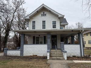 This spacious duplex offers tile flooring in the living room, hallway, and kitchen. The kitchen comes equipped with a stove and refrigerator. Both bedrooms feature plank hardwood floors. The bathroom includes a tile tub surround and tile flooring. Additional features include built-in hallway storage, blinds throughout, washer and dryer hookups, and two window AC unit