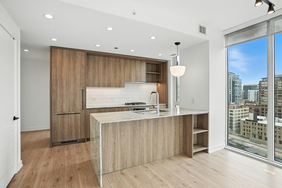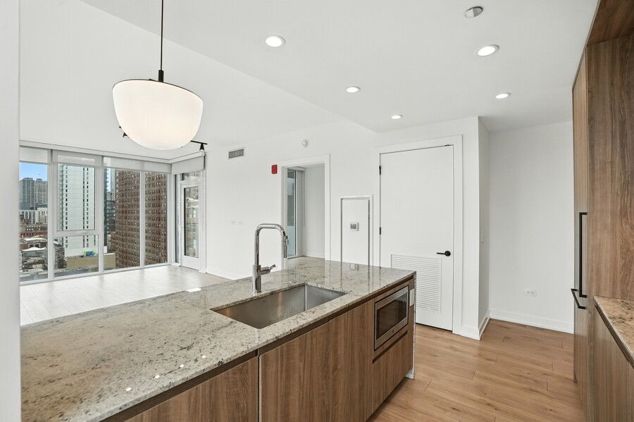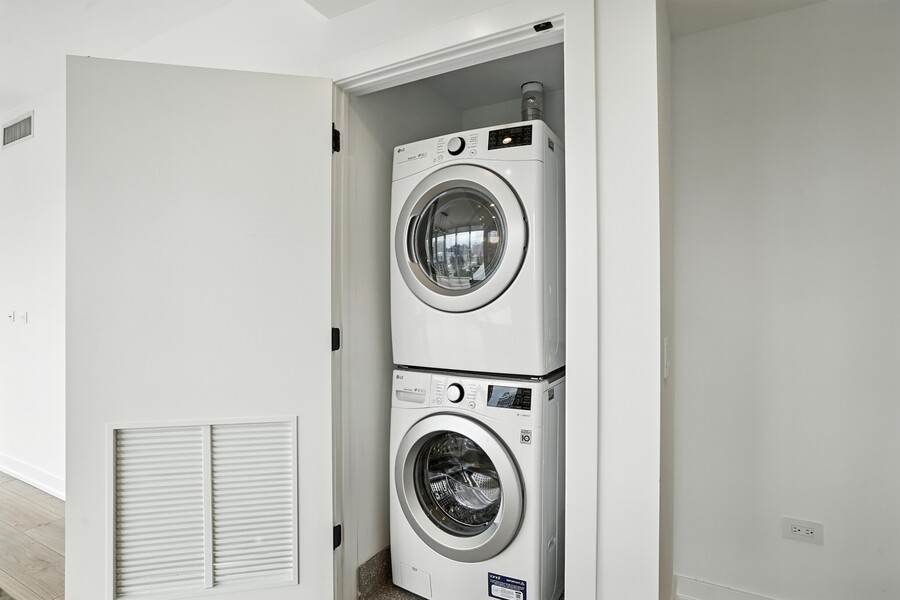 Newly constructed in 2021, this luxury high-rise is River North living at its finest. At home, enjoy an exquisitely designed apartment with remarkable indoor and outdoor amenity spaces. Step outside, and you ll find dozens of amazing restaurants, cool bars, and a beautiful riverside walkway. It s no wonder that so many folks love living in this popular downtown neighborhood. Light and warm hued luxury finishes will welcome you in these chic apartments. Floor-to-ceiling windows fill the rooms with sunlight and wide-plank wood flooring flows seamlessly throughout living spaces and bedrooms. In-unit conveniences include spacious custom closets, full-sized washer and dryer, and self-controlled heating and cooling. Kitchens are designed to entertain with beautiful Italian cabinetry, granite countertops, and premium quality appliances. Home cooks and bakers will love the stainless-steel gas range, with the slide-out hood fan and convection oven. Bathrooms have spa-like finishes with