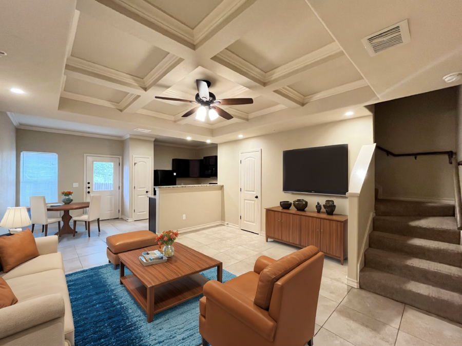 This beautifully updated 3-bedroom, 2.5-bath home offers a perfect blend of modern conveniences and comfortable living. The open floor plan creates a spacious and inviting atmosphere, ideal for both relaxing and entertaining. The living and dining area features high ceilings, abundant natural light, and easy access to the kitchen, making it a seamless hub for daily activities.