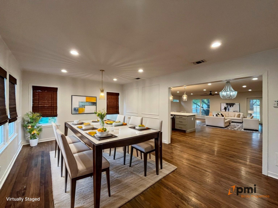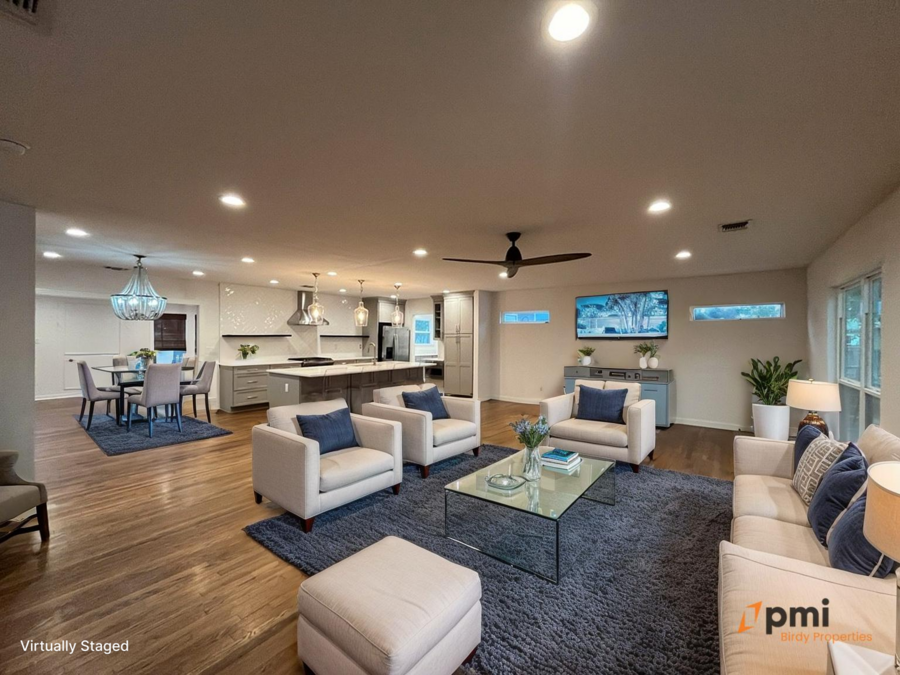 Welcome to this inviting 3-bed, 2-bath home that blends comfort, style, and convenience throughout. Step inside to find a warm, open floor plan with a mix of ceramic tile and wood flooring, creating a clean and cohesive flow from room to room. A separate dining area and spacious living room offer plenty of space to relax or entertain, while a flexible office/studio accessible from the secondary bedrooms adds versatility for work, creativity, or quiet retreat.