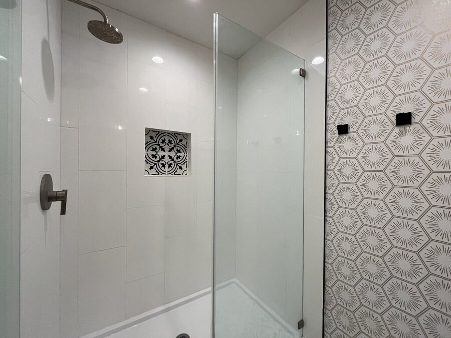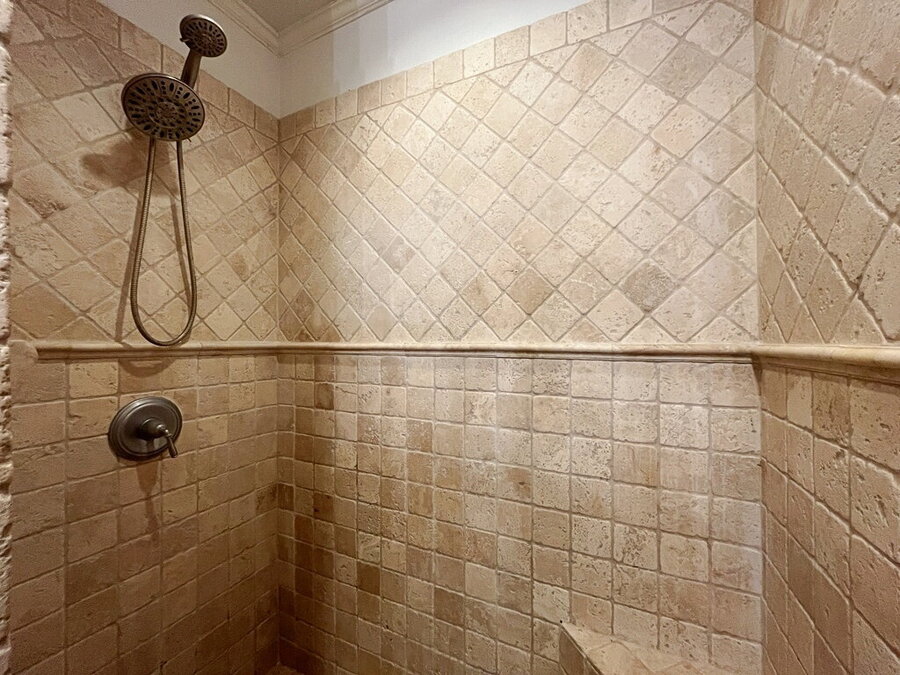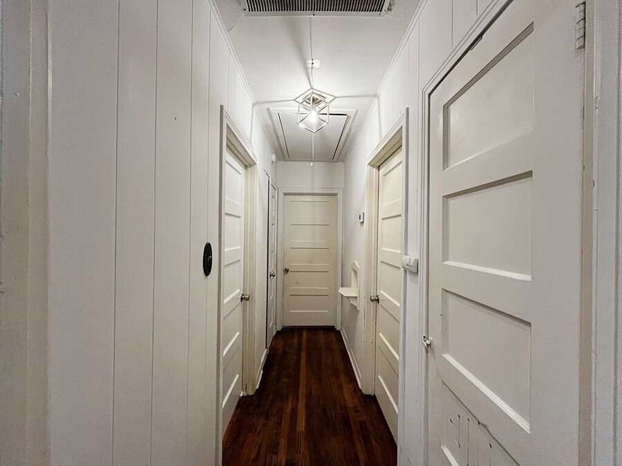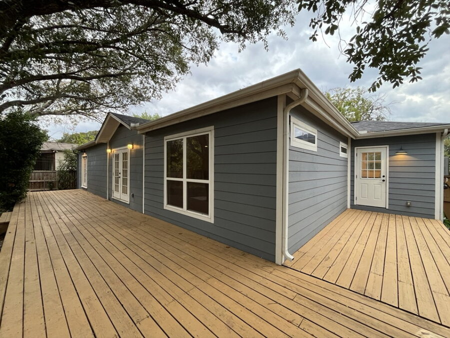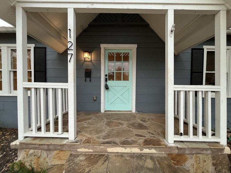 The primary bedroom is a comfortable haven with its own mini split for personalized comfort, private outdoor access, a walk-in closet, and an ensuite bath complete with a walk-in shower and single vanity.