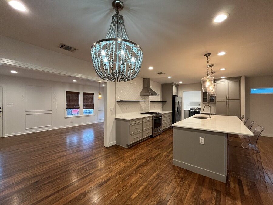 The kitchen is thoughtfully designed with everyday ease in mind, featuring an island, gas stove, dishwasher, microwave, refrigerator, and a bright eat-in area. A dedicated laundry room comes equipped with a washer and dryer and hookup for second fridge for added convenience.
