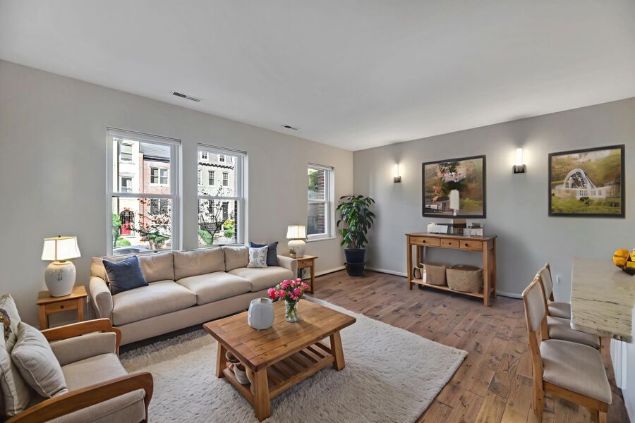 Bright and stylish 2BR/2BA Dupont Circle condo with three exposures, wood-burning fireplace, updated kitchen, and in-unit laundry's just steps from Metro, Rock Creek Park, and D.C.'s best dining and nightlife.