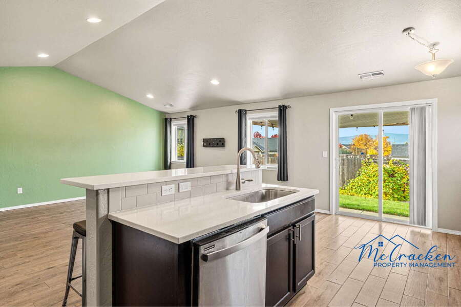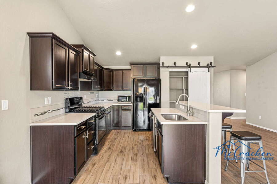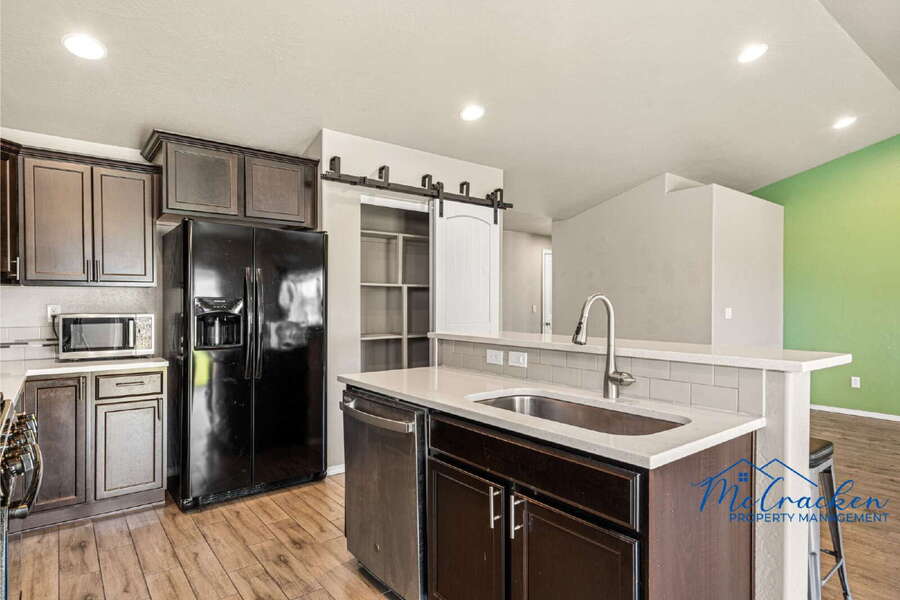 - Appliances: Fully equipped kitchen with a dishwasher, refrigerator, stove, microwave, hood/fan, and garbage disposal.
