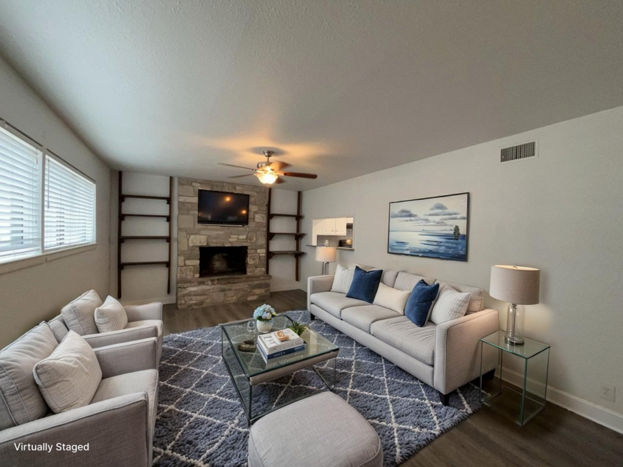 Step inside to find a mix of carpet, ceramic tile and vinyl flooring that adds both warmth and durability throughout the home. The main floor includes a convenient half bath and a cozy fireplace, creating the perfect spot to unwind. The home is equipped with HVAC and a programmable thermostat to help keep the temperature comfortable year-round. The kitchen is ready for daily cooking and entertaining, featuring a dishwasher, electric glass cooktop stove, and refrigerator, along with ample space for meal preparation. A dedicated laundry room with washer and dryer hookups adds everyday convenience.