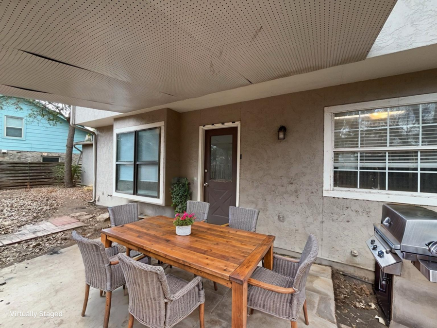 Outside, the backyard creates a peaceful setting with a covered patio, mature trees, gutters, a privacy fence and a storage building/shed for extra space. A two-car garage provides secure parking and additional storage. Located in a community near shopping, this home offers easy access to everyday conveniences while still providing a comfortable place to call home. This charming property combines functional living spaces with inviting outdoor areas, ready for its next residents to enjoy.