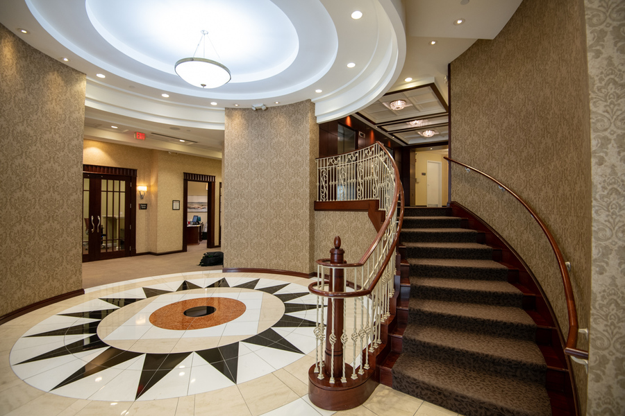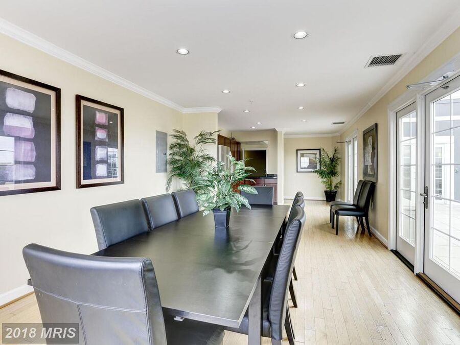 Jenkins Row offers convenient amenities including a 24-hour concierge, fitness center, bicycle storage, and a business center. Residents also enjoy a furnished community lounge with TVs, pool table, and dart board, along with three rooftop decks offering impressive views of the Capitol building.