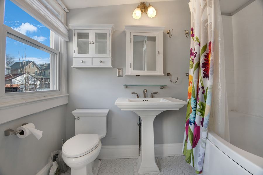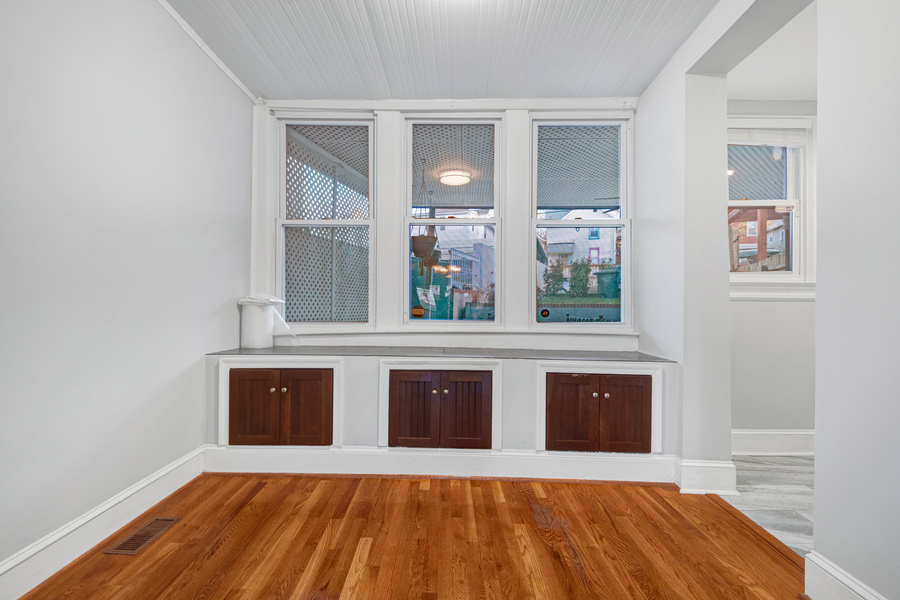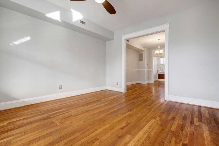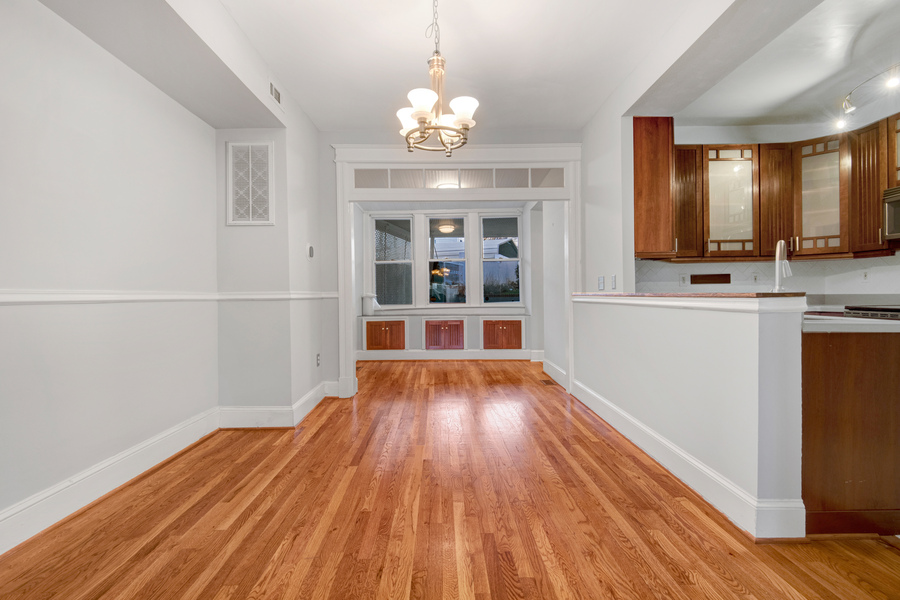This classic DC rowhome greets you with a delightful front porch. Through the front door is your living room with original hardwood floors and leads into a dedicated dining room. There are charming built ins at the end of the dining room that add for extra seating and storage. The kitchen is off the dining room and has ample counter and cabinet space. The appliances are stainless steel and boasts a modern double door fridge. At the tail end of the first floor is a mud room that leads to the backyard space. Downstairs is a fully finished basement. The basement has ample living room as well which allows for many design options. There is a full bathroom on this level. On the top floor are three bedrooms and one full bathroom within the hallway. In one bedroom there is a fantastic bonus room that can be used as an office as well as an ensuite bathroom. In the backyard is additional space including a paved patio and beautiful yard.