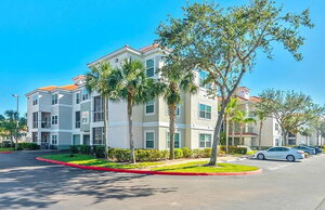 This spacious 1 bedroom, 1 bathroom apartment offers 805 square feet of bright, modern living within the vibrant Bimini Square community. The layout feels open and inviting with contemporary finishes throughout, including luxury vinyl plank flooring, a large center island, and an upgraded kitchen featuring quartz countertops, sleek cabinetry, stainless steel appliances, and a striking blue tile backsplash. The living room opens to a generous private balcony that expands your living space and brings in plenty of natural light. The bedroom comfortably accommodates a king-size setup and connects to a walk-in closet along with a beautifully finished bathroom that includes double vanities, LED-lit mirrors, and an oversized glass-enclosed shower. A full laundry room with side-by-side machines and extra storage adds everyday convenience. Downstairs, the building is home to Lee Health offices and other high-end retail spaces, creating a polished, walkable environment right outside your door.