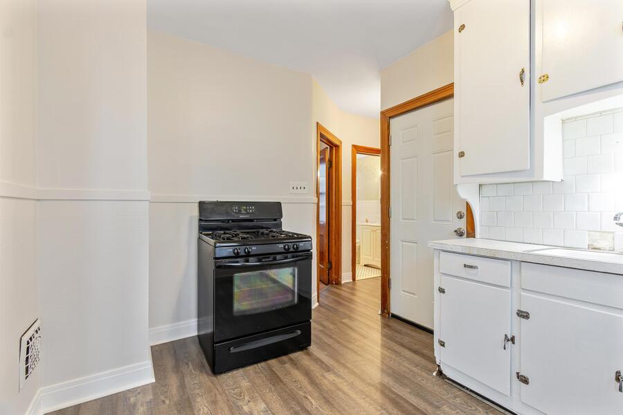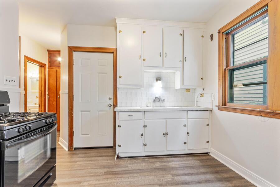 The kitchen offers durable laminate tile flooring, ample cabinet and counter space for meal preparation, and multiple windows that provide great natural light while enhancing the overall openness of the space.