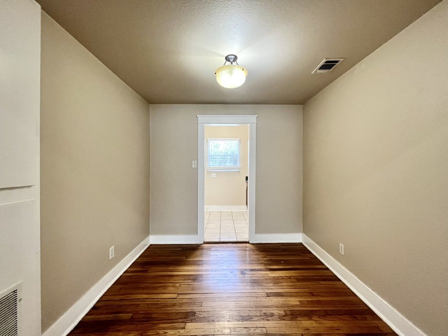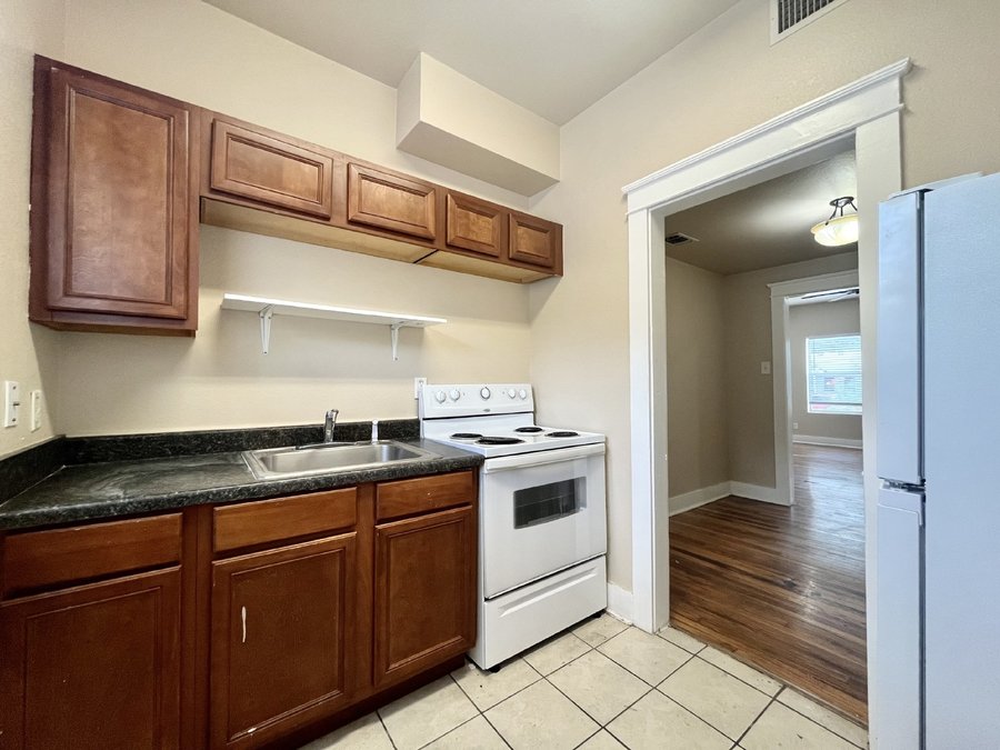 This charming studio apartment offers a comfortable and efficient living space with a well-designed layout. The kitchen is equipped with an electric stove/range and refrigerator, providing everything you need for meal preparation. The open living and dining area features ceramic tile and wood flooring, enhancing the modern feel of the space.