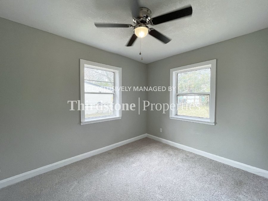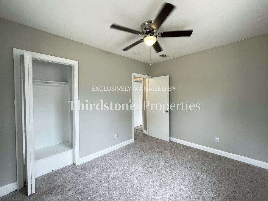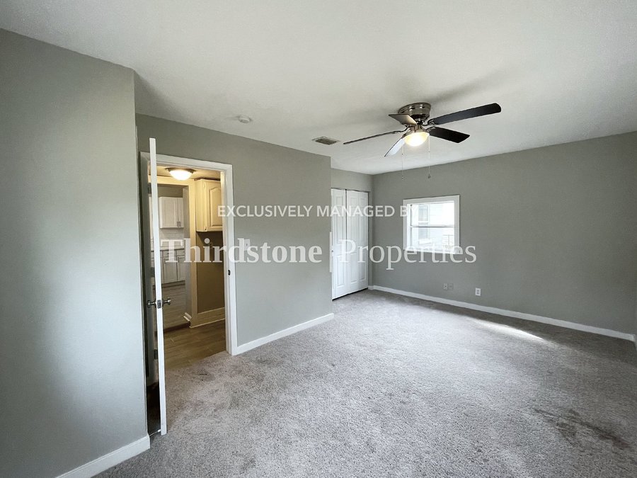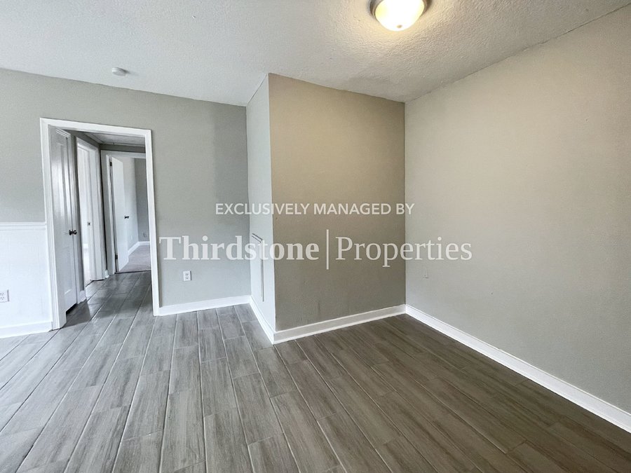 Make an appointment to view this updated 3 bedroom, 1 bathroom home featuring a spacious living room, large yard, and screened-in front porch. Illuminated by a kitchen bay window, the kitchen showcases white shaker cabinets with quartz countertops and a bright white subway tile backsplash. The home features modern tile flooring in the living areas and carpet in the bedrooms. Ceiling fans throughout help circulate cool air. Washer and dryer hookups are located in a dedicated laundry room. Off-street parking is available. Residents are responsible for all utilities, lawn care, and are required to maintain active renter’s insurance throughout the lease term. Pets are welcome, breed and weight restrictions may apply. Application fee $55 per person 18 and over. Lease Term: 12 months.
