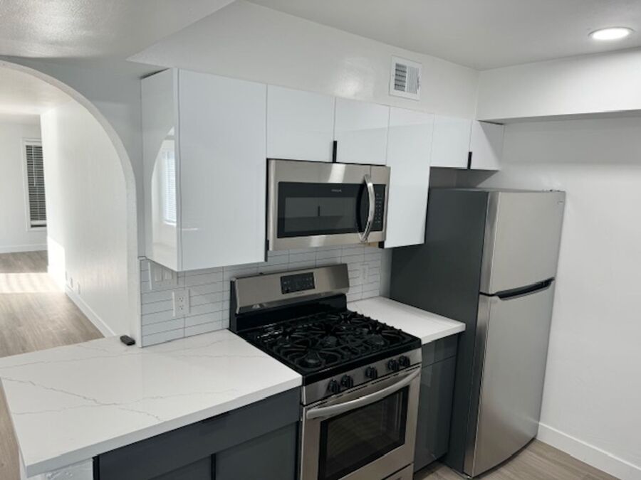 Nestled within our contemporary apartments lies an array of coveted features meticulously crafted to enhance your living experience. As you step inside, you're greeted by spacious open floor plans that effortlessly connect each room. The kitchens, the heart of these homes, are adorned with sleek subway tile backsplashes and feature modern high gloss, full-overlay, two-tone cabinetry.